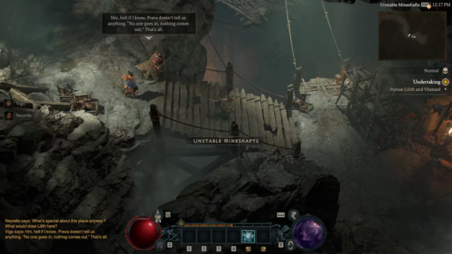 - Undertaking – Fight through the dungeon “Condemned Mines,” inspect jammed lifts, locked doors, and escape deeper underground before the mines collapse.