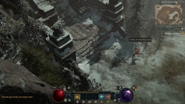 - Wayward – The player searches for Neyrelle in the Mistral Woods after she left to find the hidden Horadric Vault; when you stumble upon a glowing tree, leading you into the the Darkened Holt dungeon.