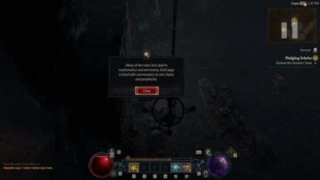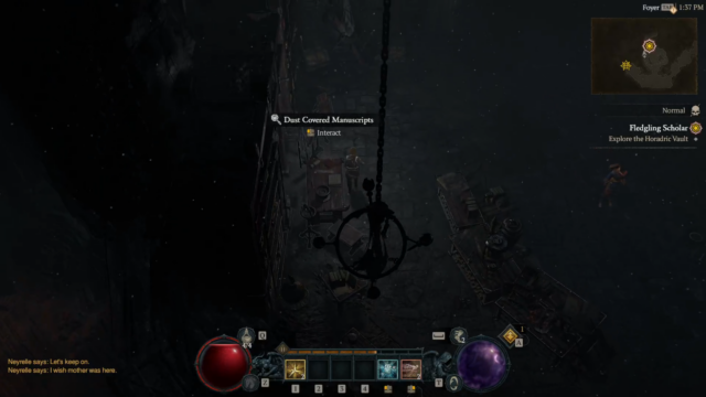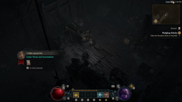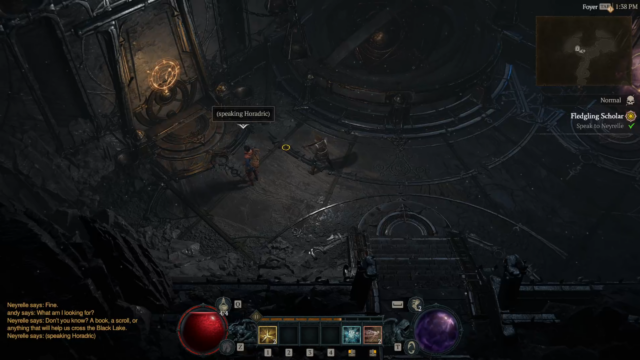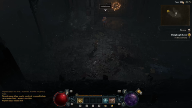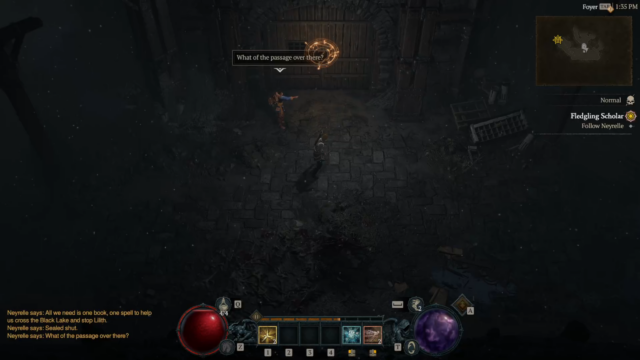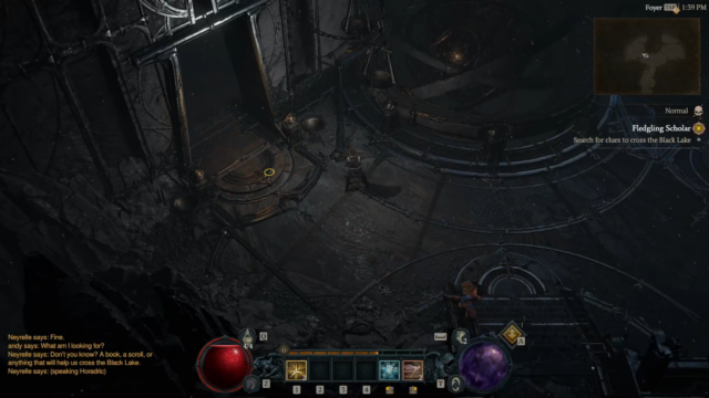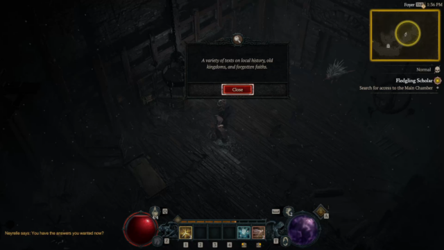 - Fledgling Scholar – Neyrelle follows you into the Horadric Vault (Dungeon with a POI at the beginning), to search for anything to help you cross the Black Lake, fighting demons and eventually defeating a Boss “Tchort” to recover a crucial Horadric spellbook and return it to Neyrelle.