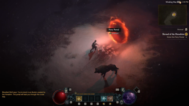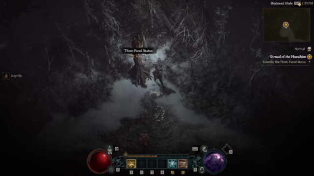 - Shroud of the Horadrim – The player fights through enemies and hordes, continues to search for Neyrelle in the dungeon, eventually finds her and completes the dungeon which clears the “Shadowed Glade” (the dungeon entrance) which was blocking the pathway to the Horadric Vault