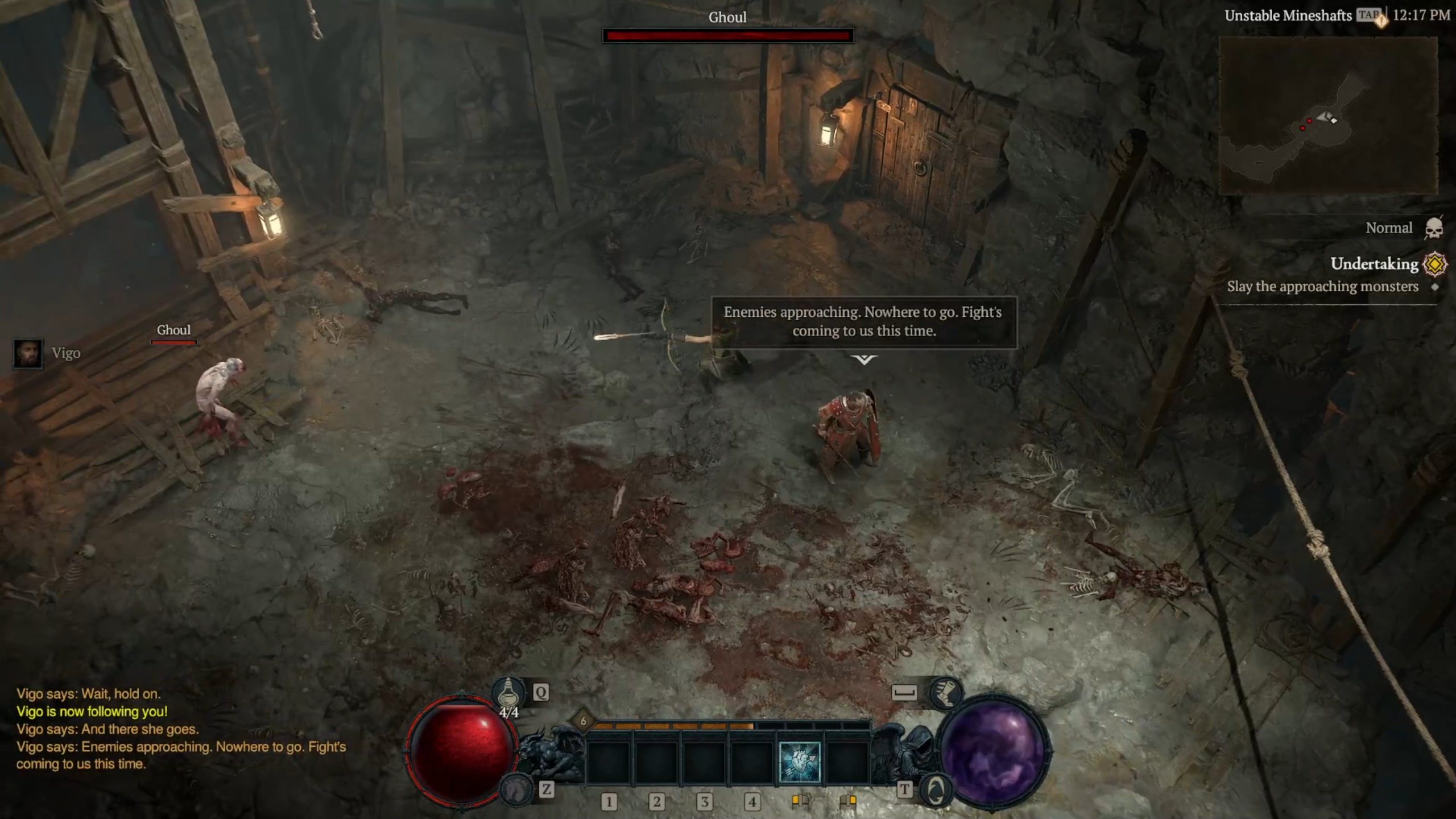 • Undertaking – Fight through the dungeon “Condemned Mines,” inspect jammed lifts, locked doors, and escape deeper underground before the mines collapse.
