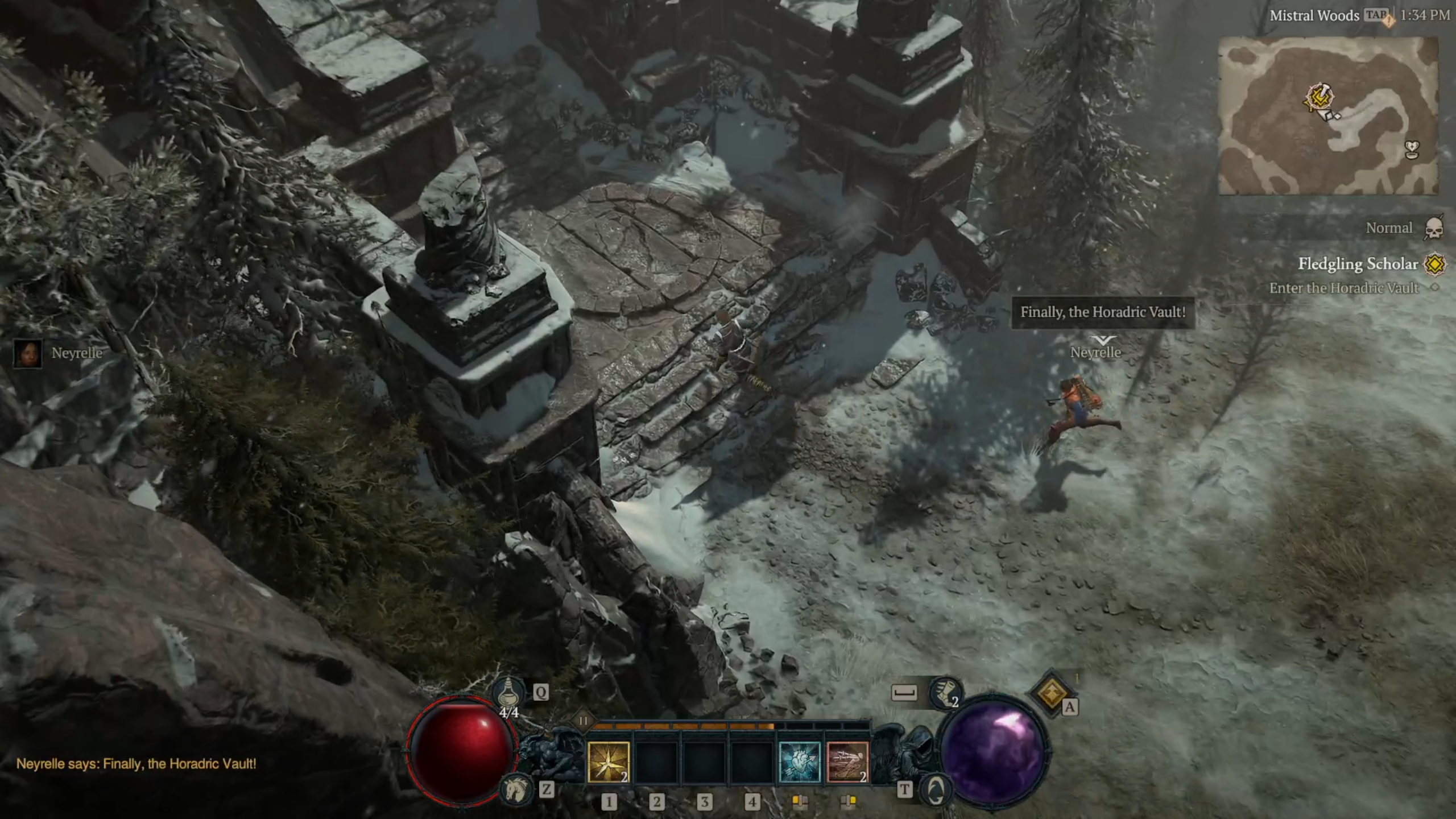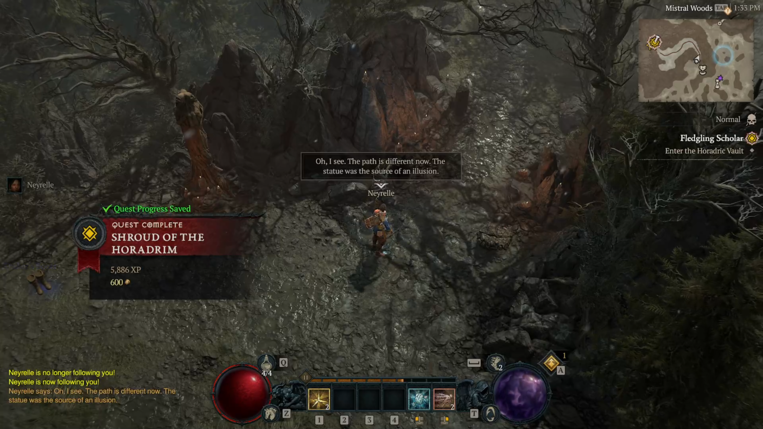 • Shroud of the Horadrim – The player fights through enemies and hordes, continues to search for Neyrelle in the dungeon, eventually finds her and completes the dungeon which clears the “Shadowed Glade” (the dungeon entrance) which was blocking the pathway to the Horadric Vault