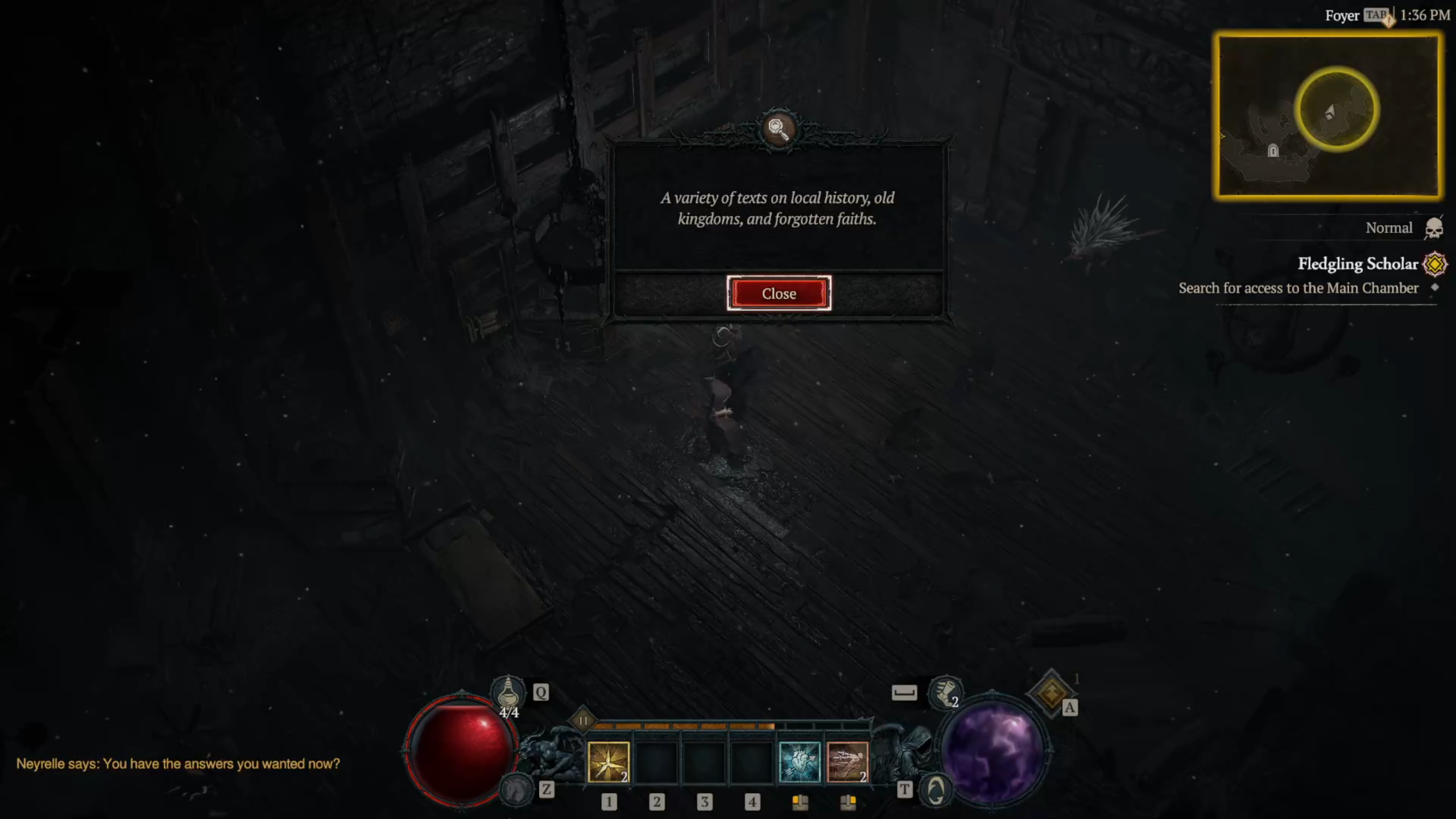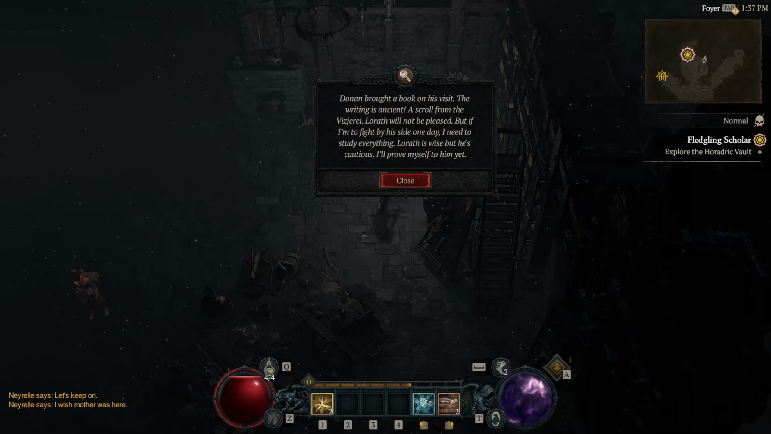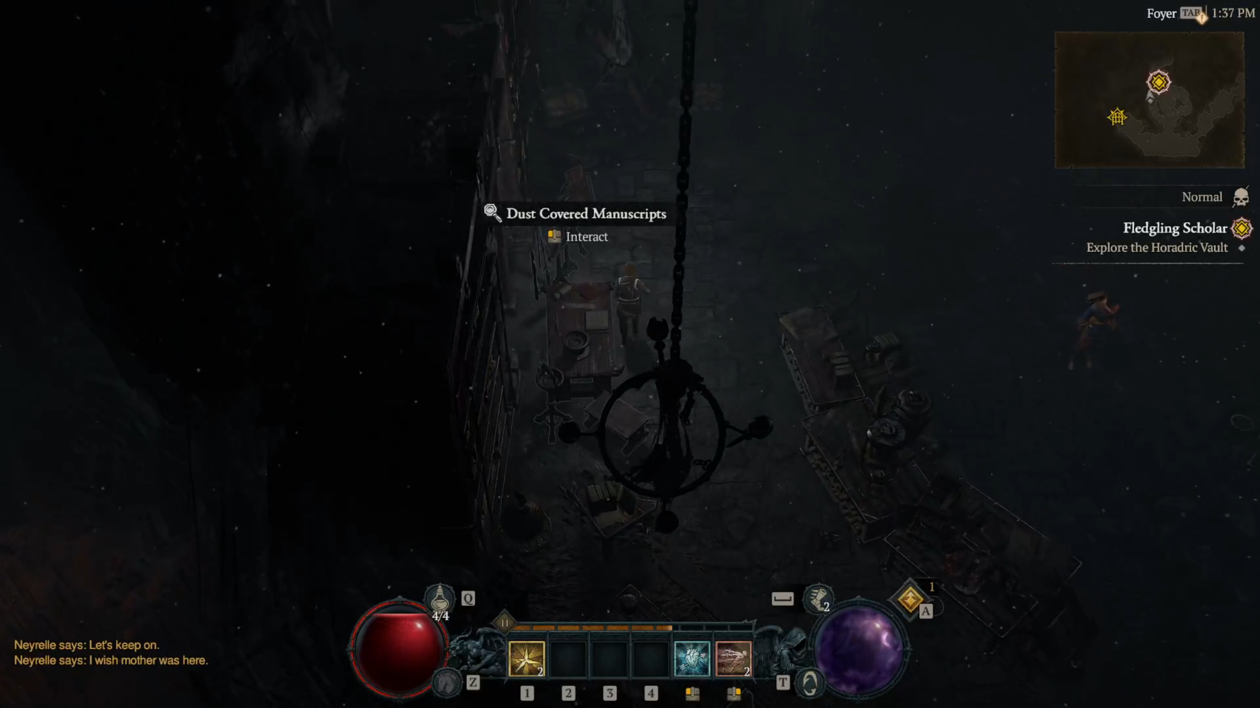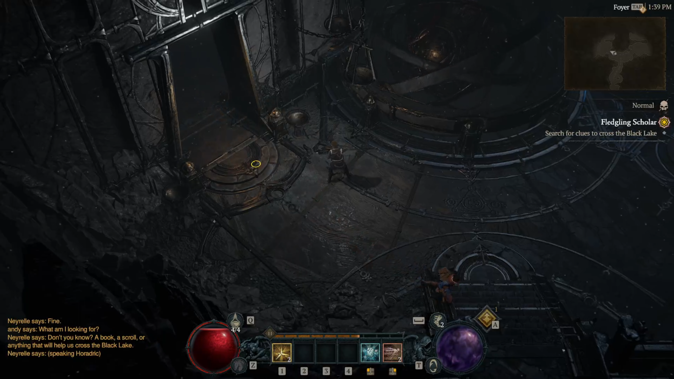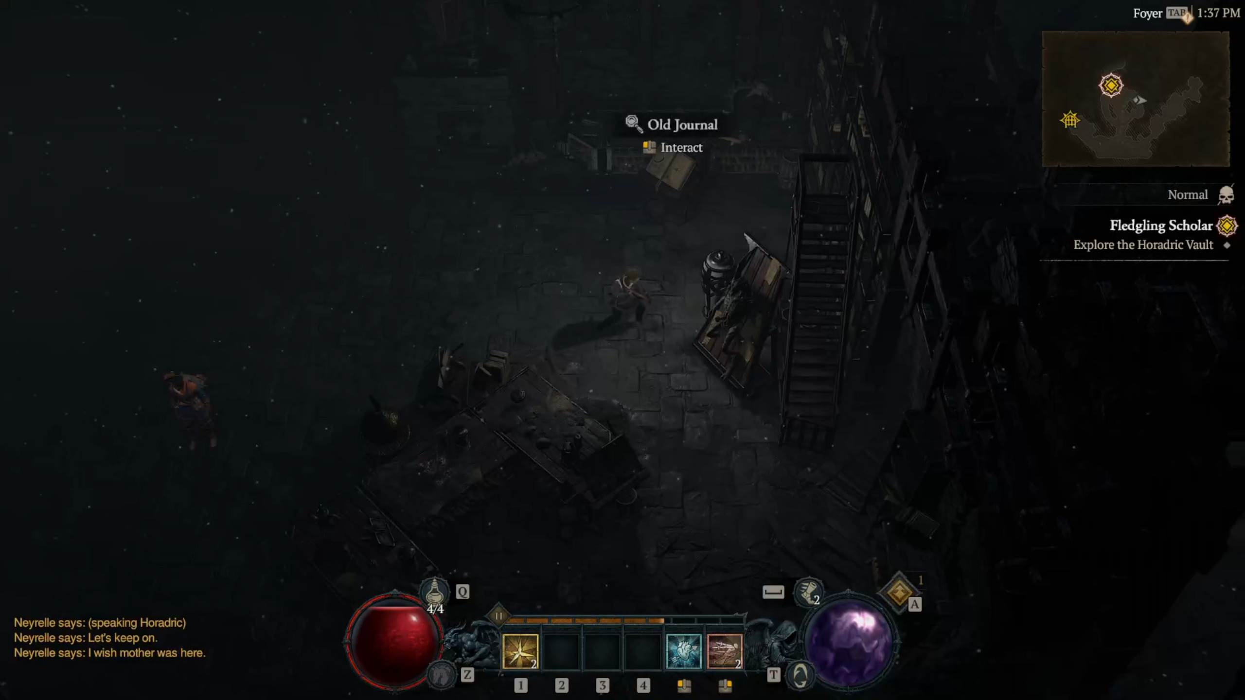 • Fledgling Scholar – Neyrelle follows you into the Horadric Vault (Dungeon with a POI at the beginning), to search for anything to help you cross the Black Lake, fighting demons and eventually defeating a Boss “Tchort” to recover a crucial Horadric spellbook and return it to Neyrelle.