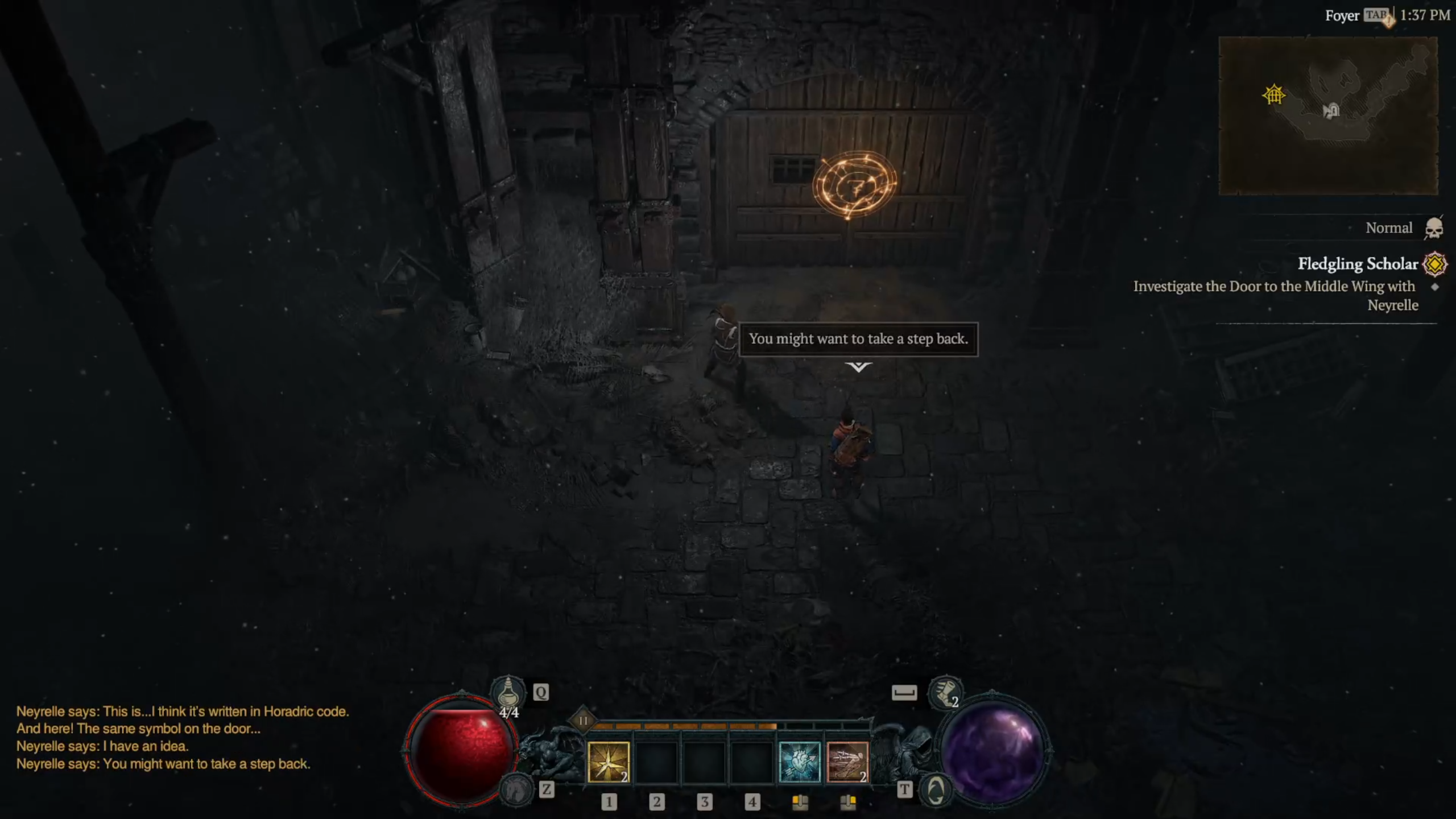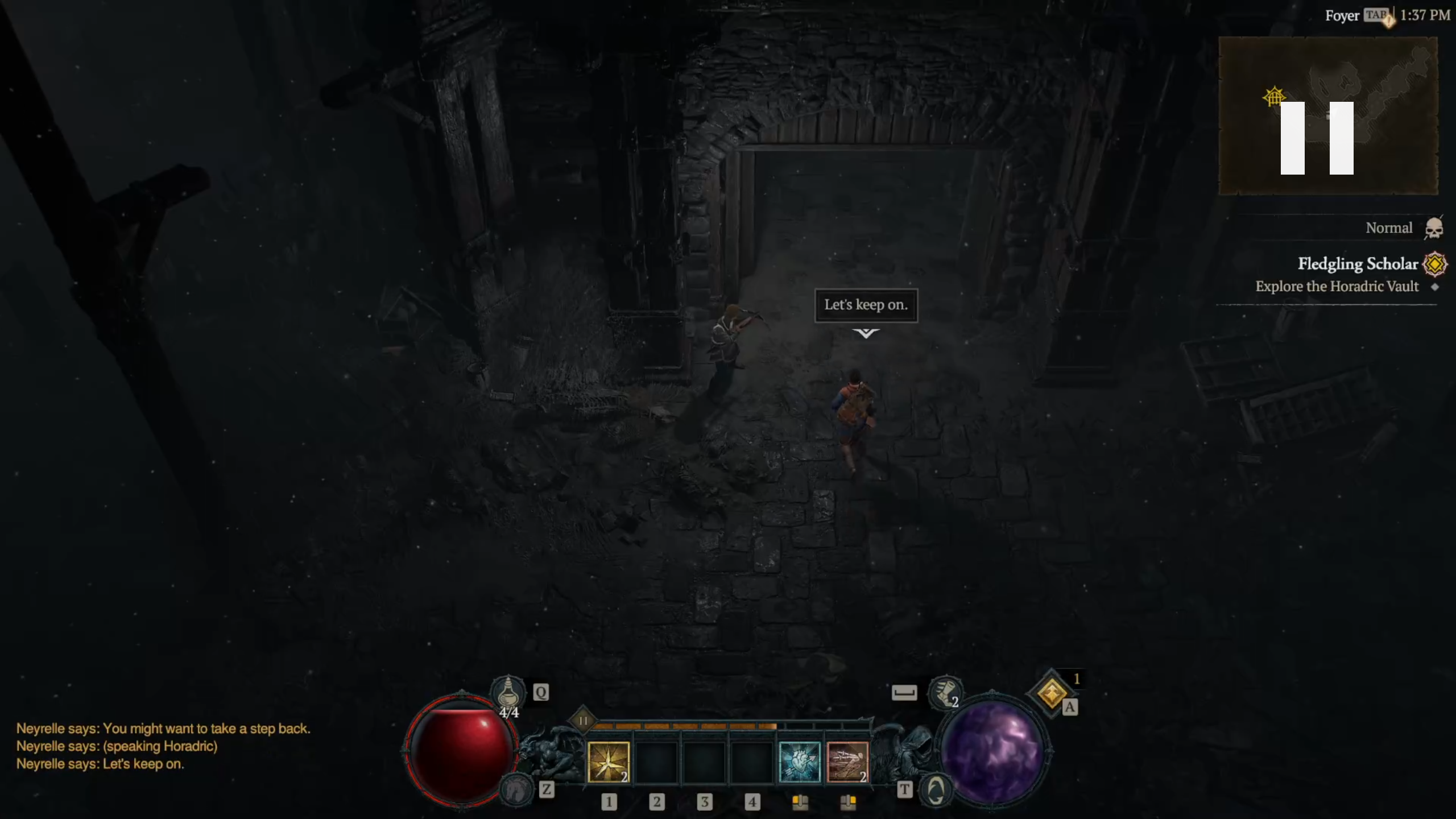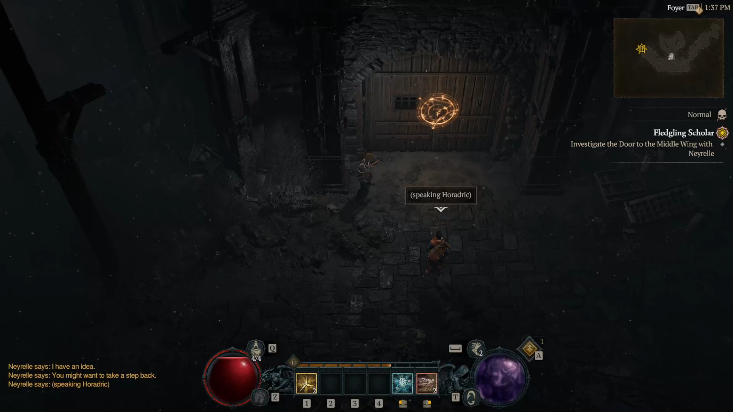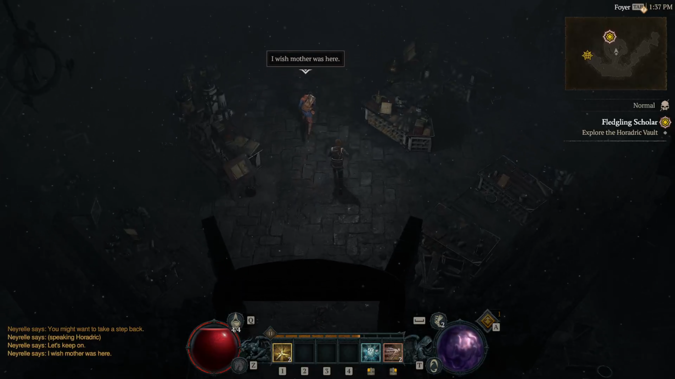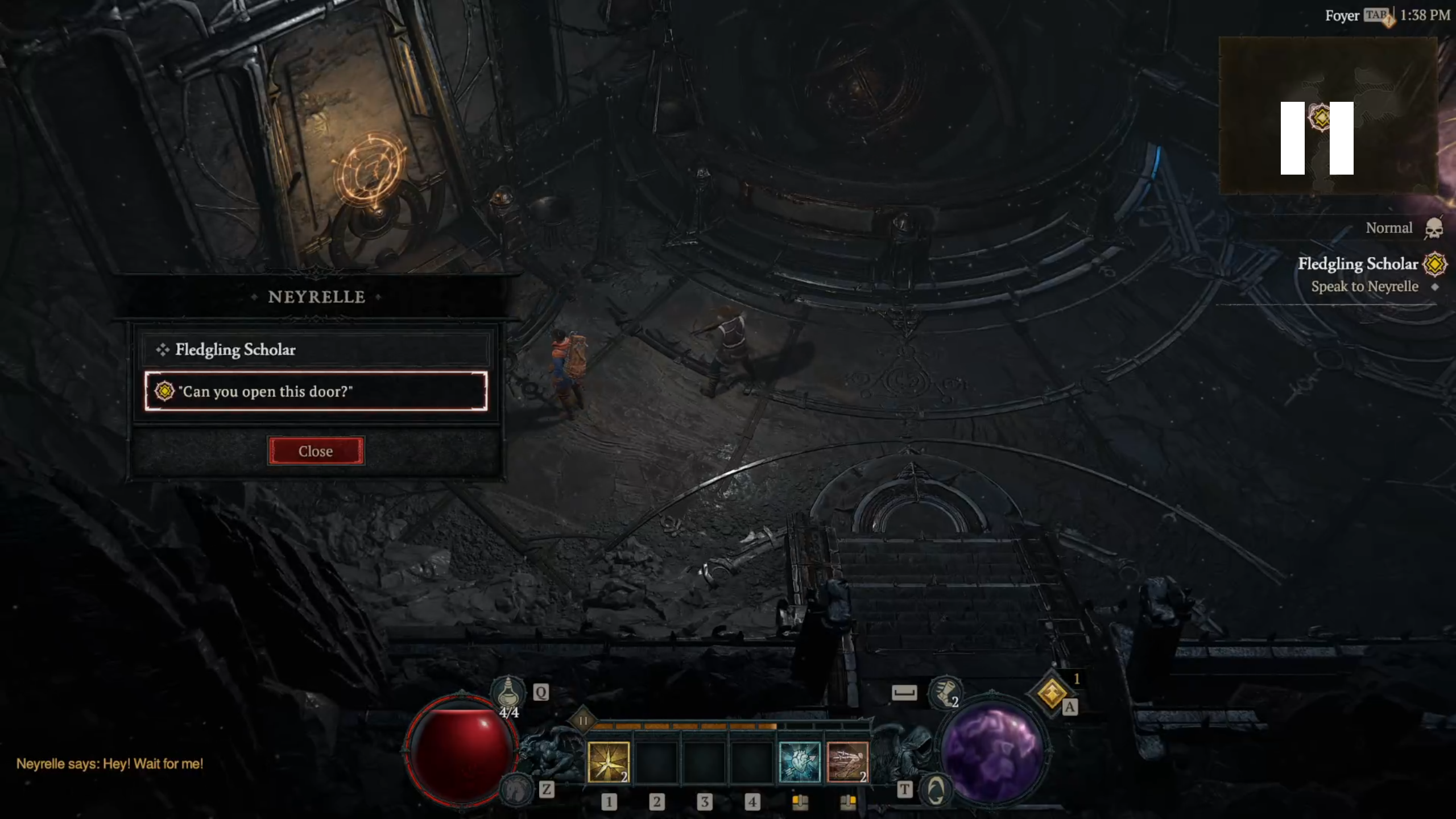 • Fledgling Scholar – Neyrelle follows you into the Horadric Vault (Dungeon with a POI at the beginning), to search for anything to help you cross the Black Lake, fighting demons and eventually defeating a Boss “Tchort” to recover a crucial Horadric spellbook and return it to Neyrelle.