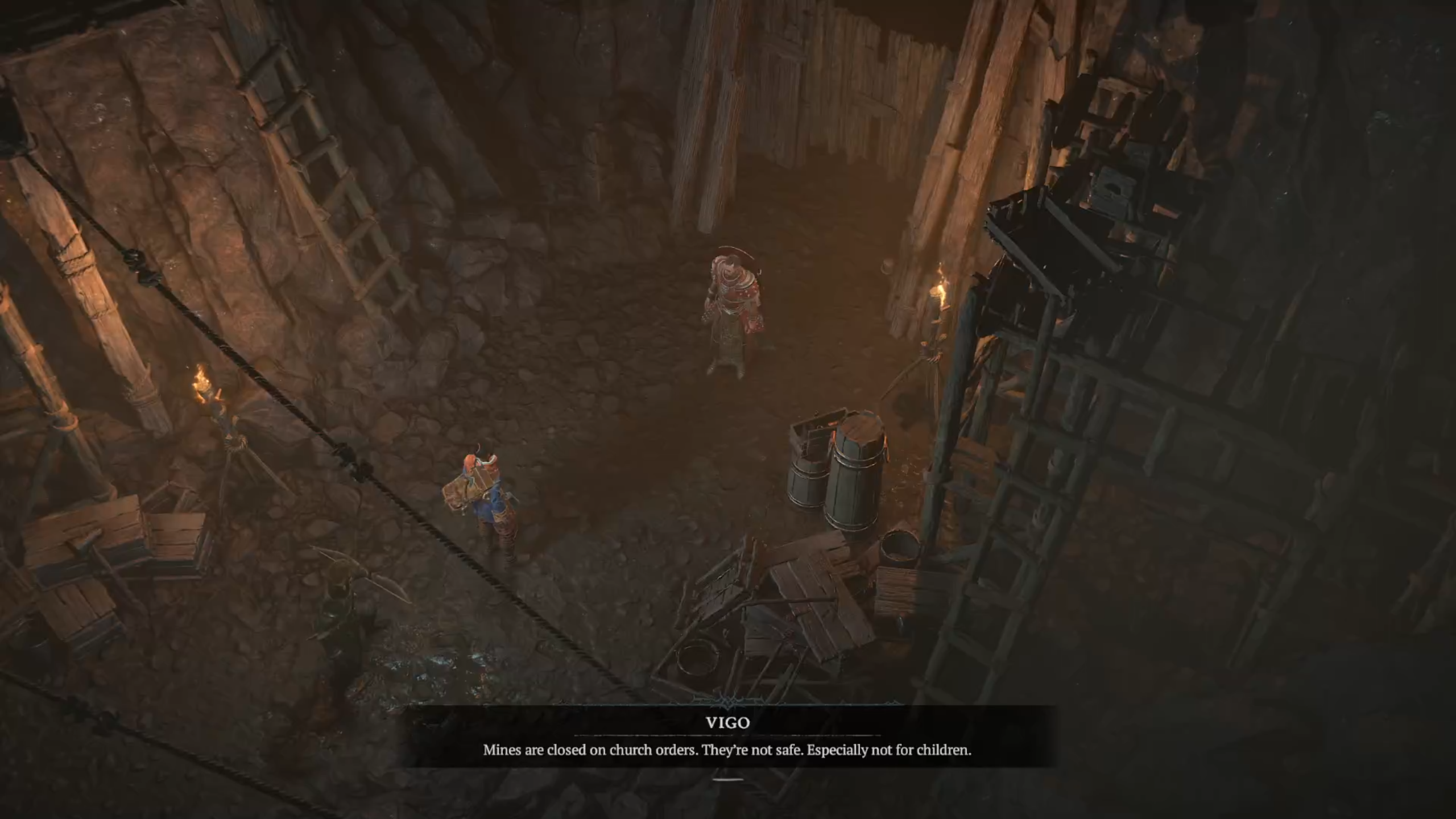 • Tarnished Luster – You take Vigo’s Report to Yelesna, where you learn about how demons, ghouls, and monsters have overtaken the mines and are sealed off to the villagers of Yelesna for their own safety, putting strain on their well-being, economy, and have become starved. The knights direct you to the mining camp to find Vigo.