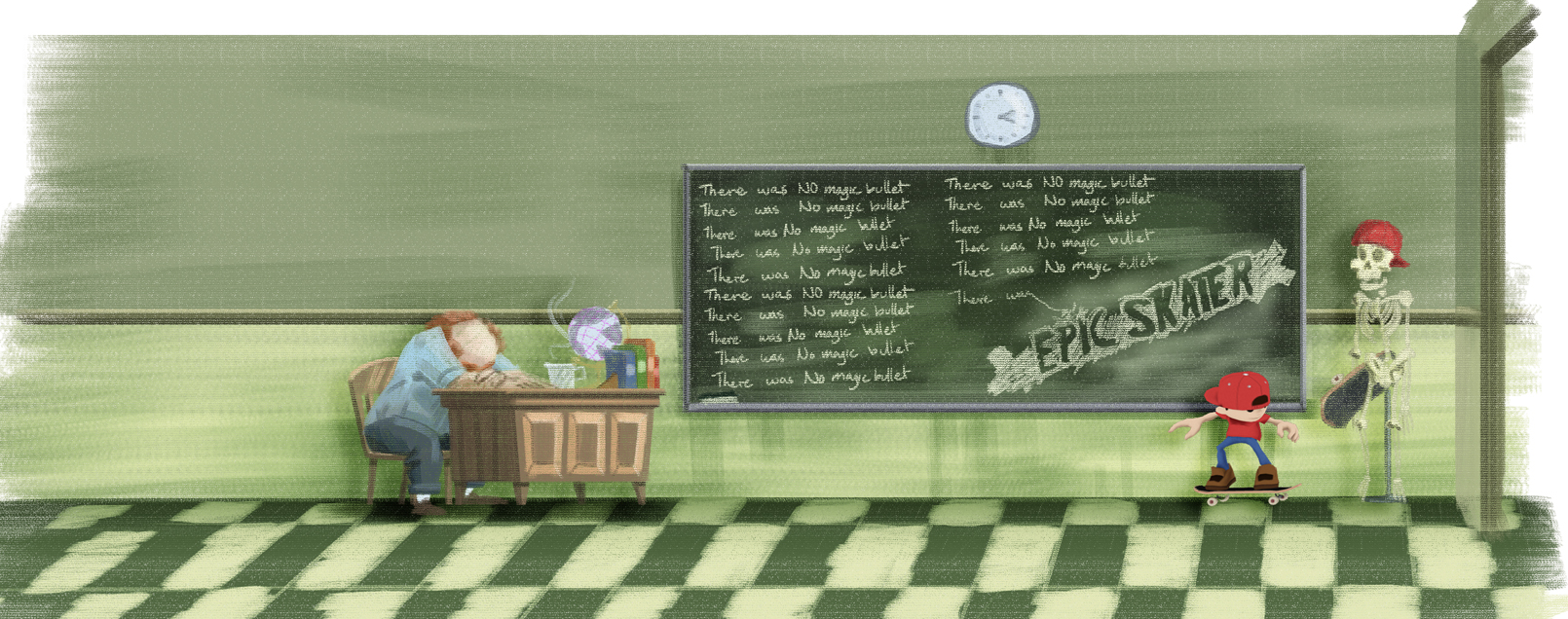 Started a company and recruited talent to put together a vertical slice/demo of a 2.5D sidescrolling skateboarding game. Our crowdfunding campaign didn’t meet its fundraising goal, but it got a lot of attention from game developers, publishers, and professional skaters which led to a 3 year partnership/publishing deal with Kongregate (Gamestop) which funded the project until completion.