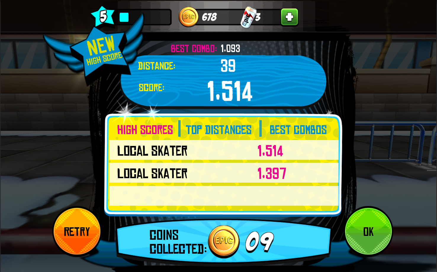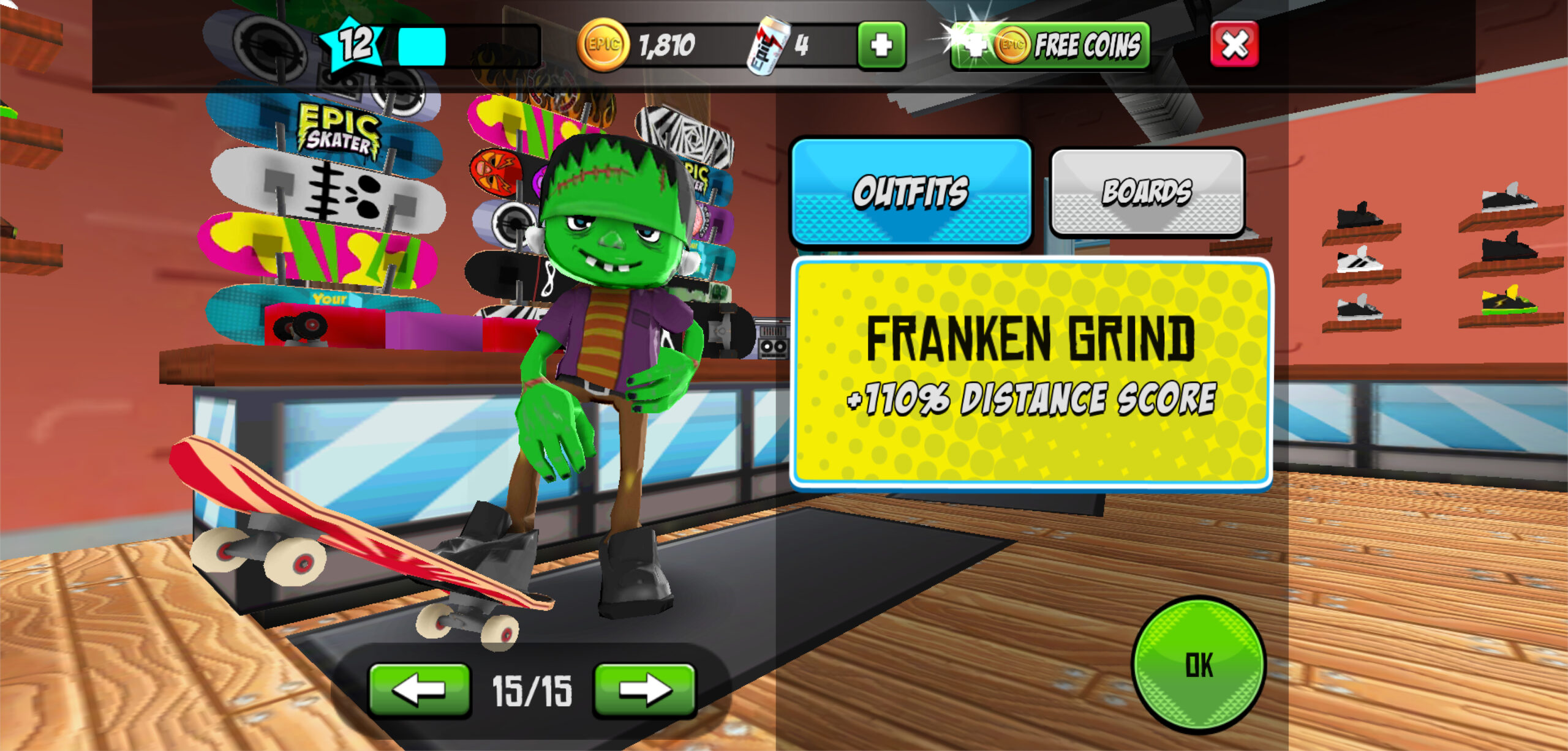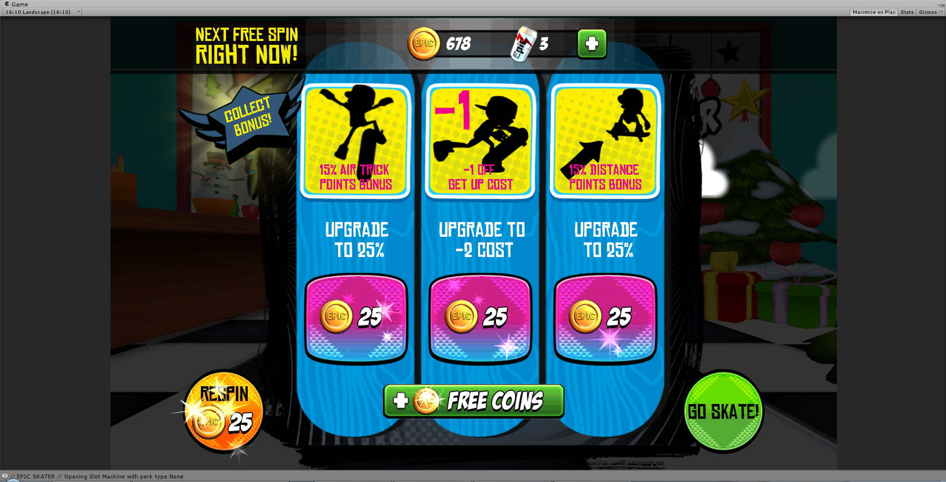We set post launch goals and funding to expand on the game’s feature sets, fix bugs, and content updates to maximize average revenue per daily active user. This included new skater outfits, skate decks, perks based on those items, environments/levels, interstitial ad support, rewarded video ad support and holiday-focused content updates.