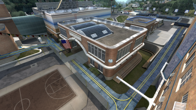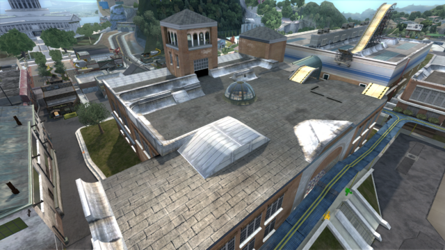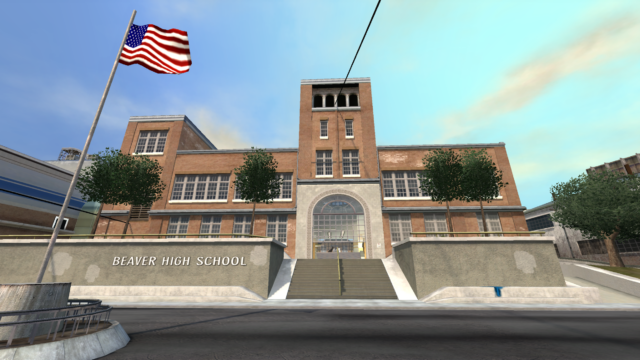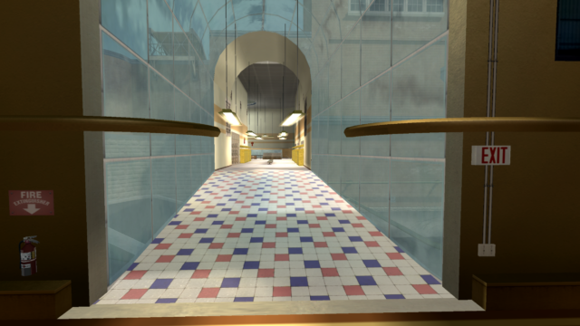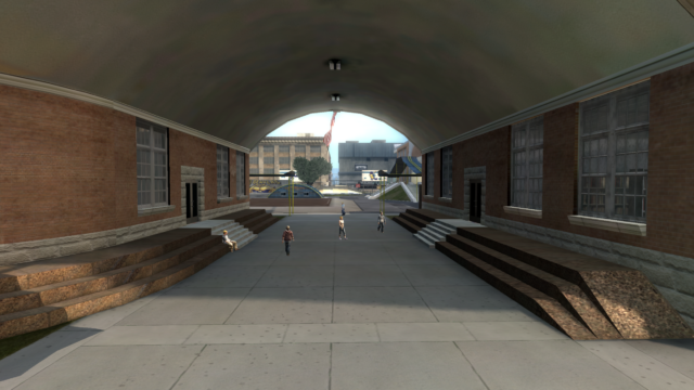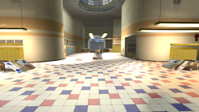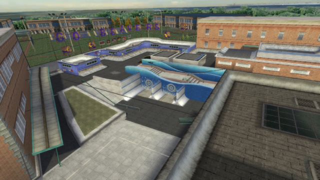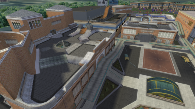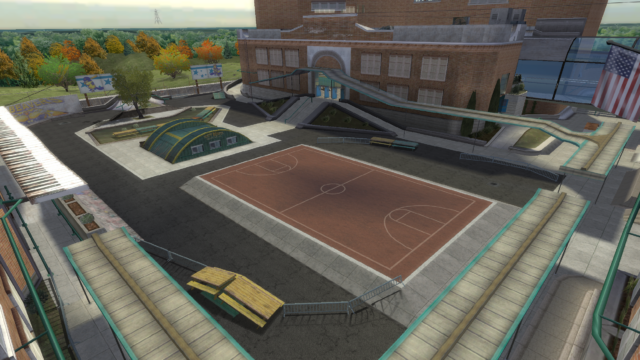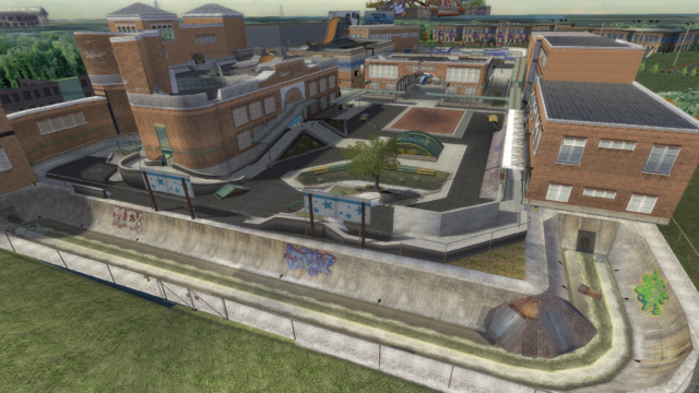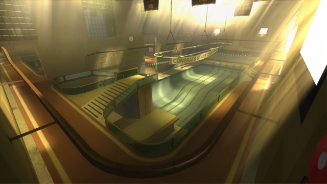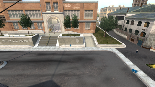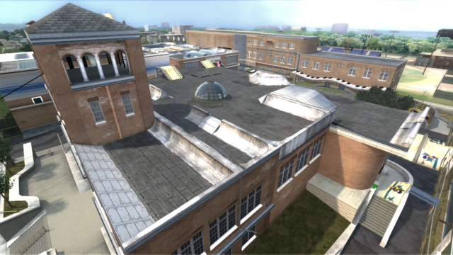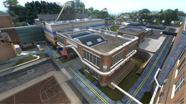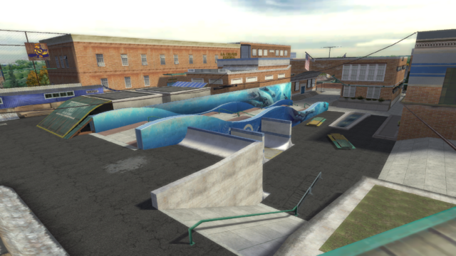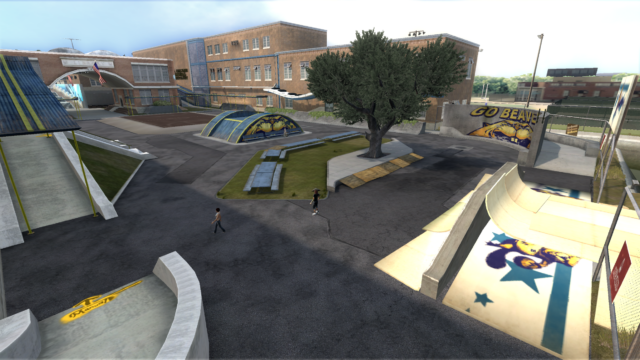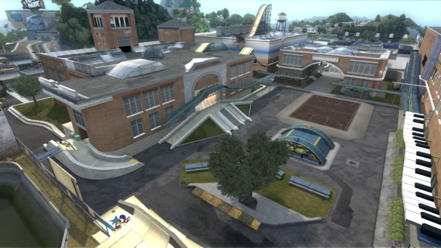 My main objective was to build a fun School level with a skateable exterior *and* interior. Up until this point, there have been at least 3 school levels in the series but none with skateable interior hallways.