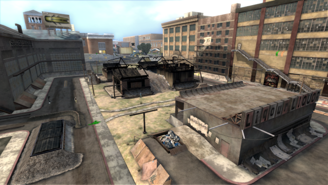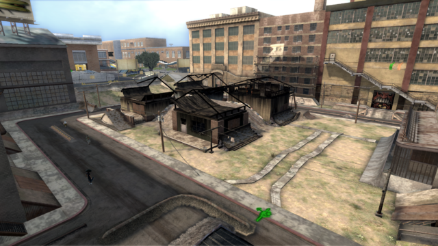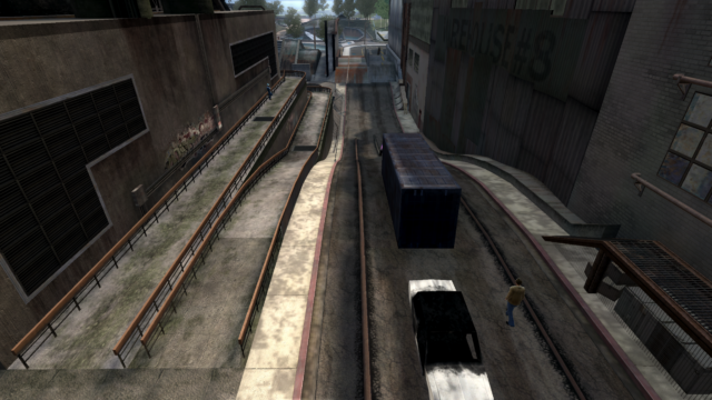 Main directive for the Slums is to serve as a run-down and darker counterpart to the suburbs/houses area (zone where the user starts the game). It needed to connect into both the Factory and Park levels, so I had to come up with level boundaries that would open (after-state) after the player unlocks those areas.