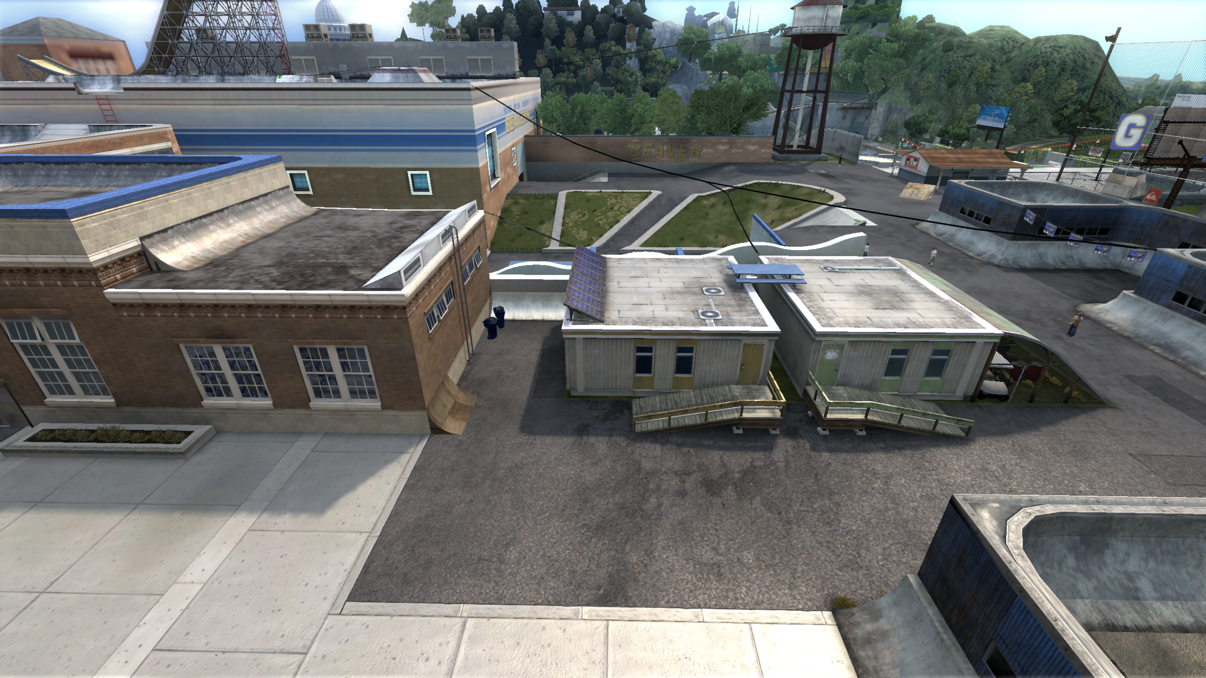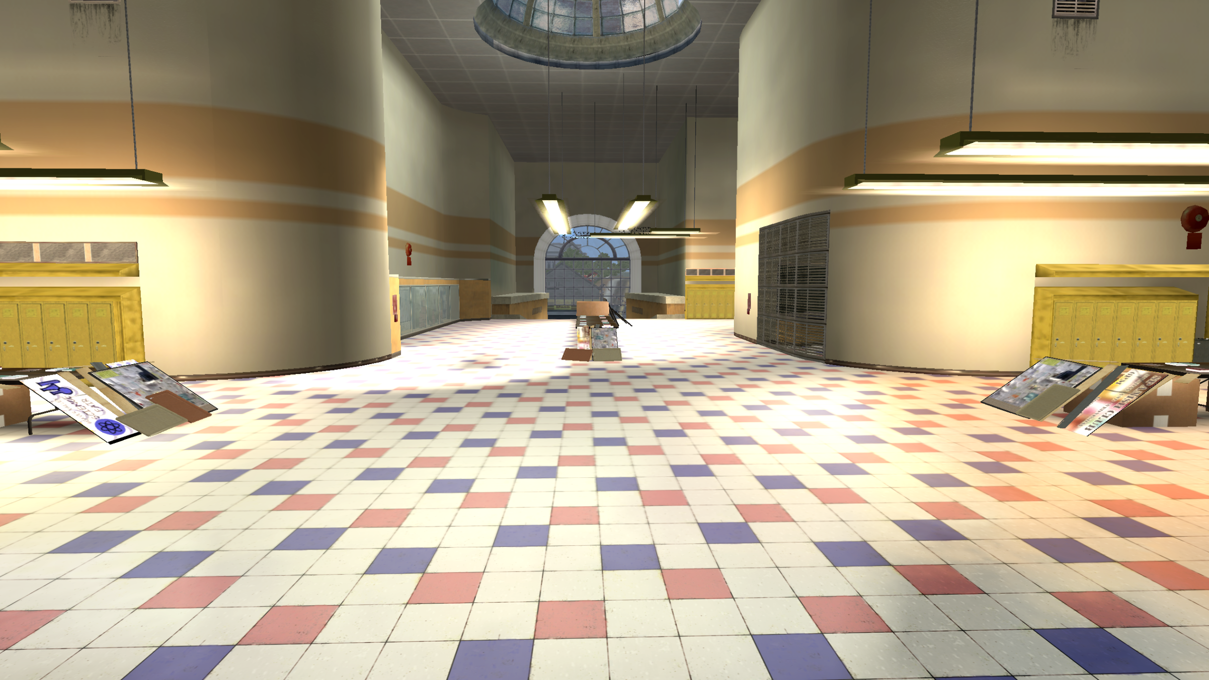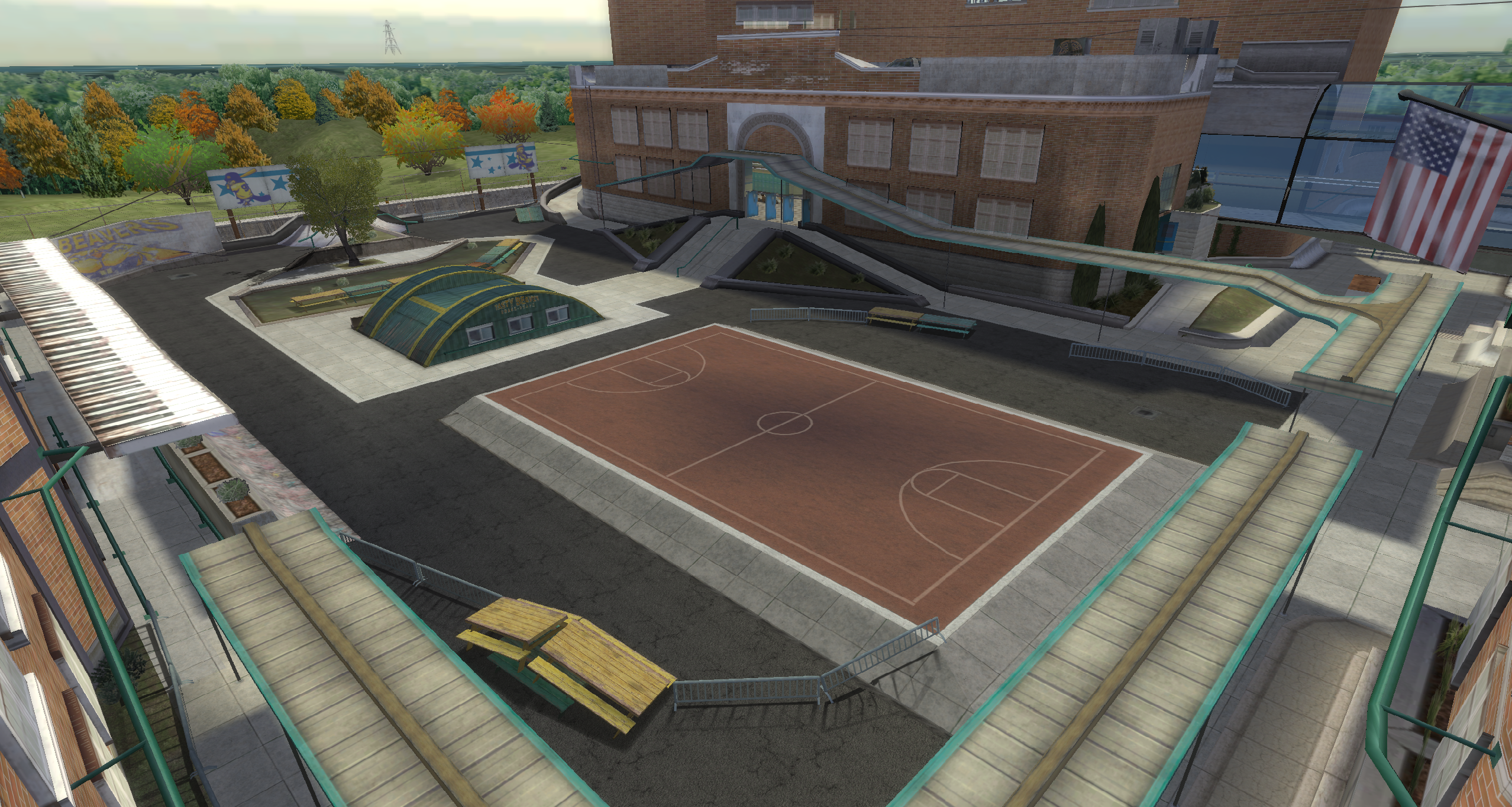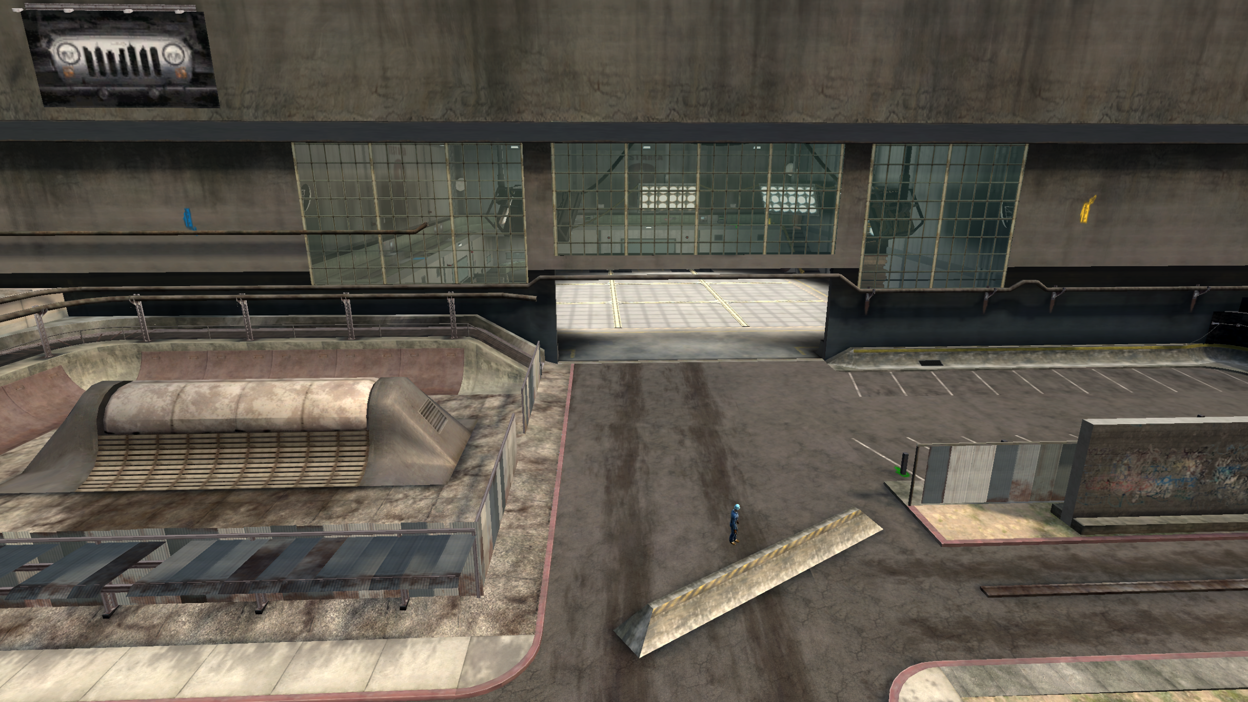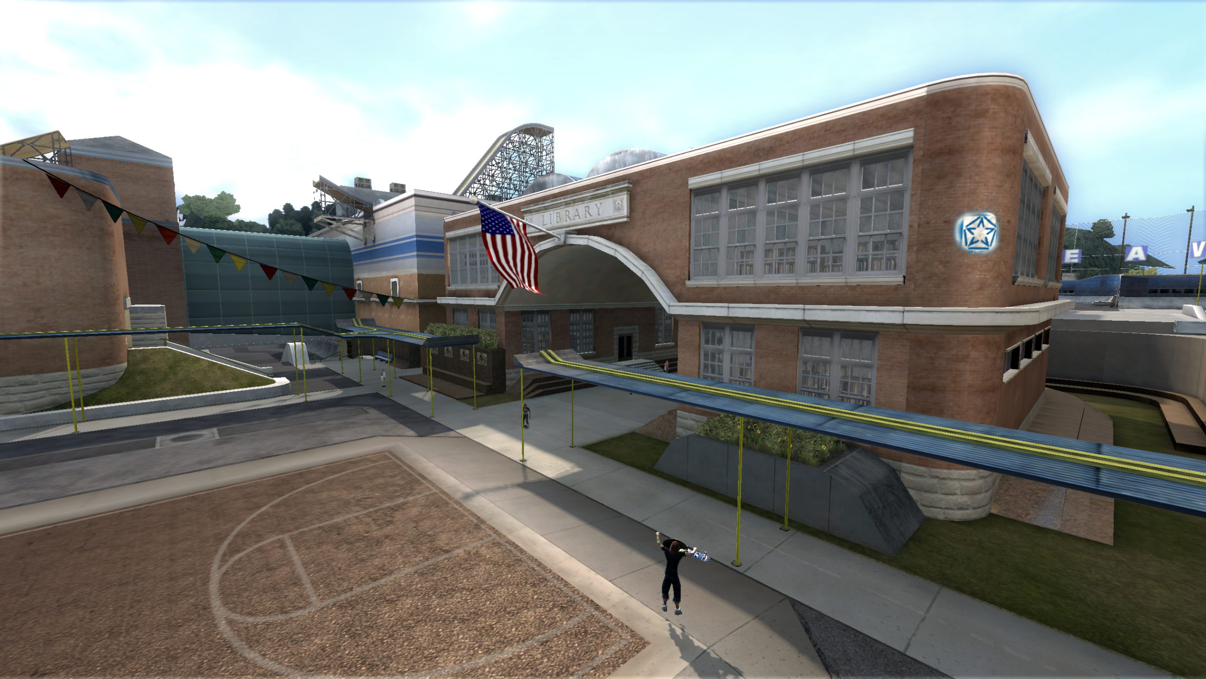 My main objective was to build a fun School level with a skateable exterior *and* interior. Up until this point, there have been at least 3 school levels in the series but none with skateable interior hallways.