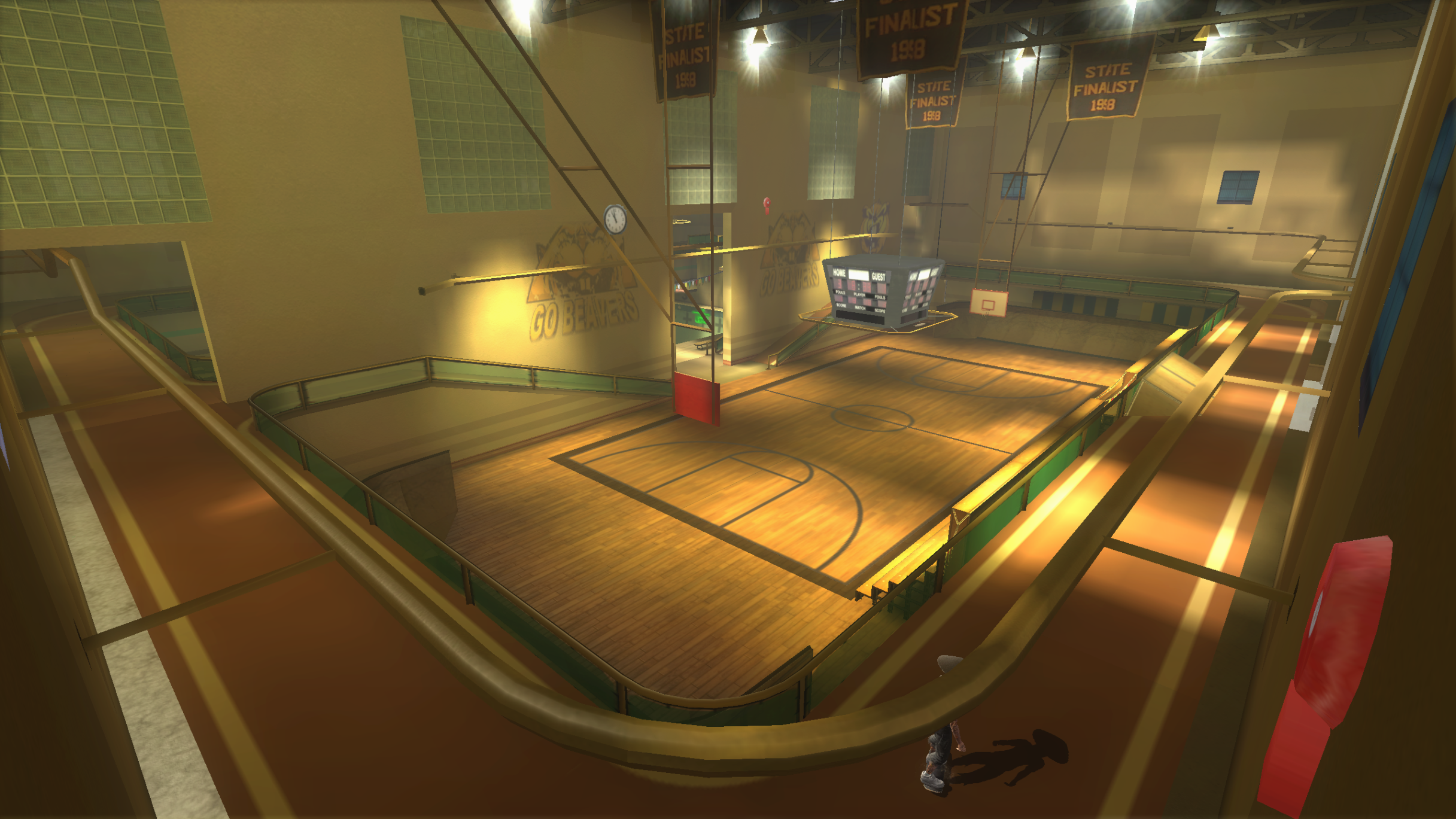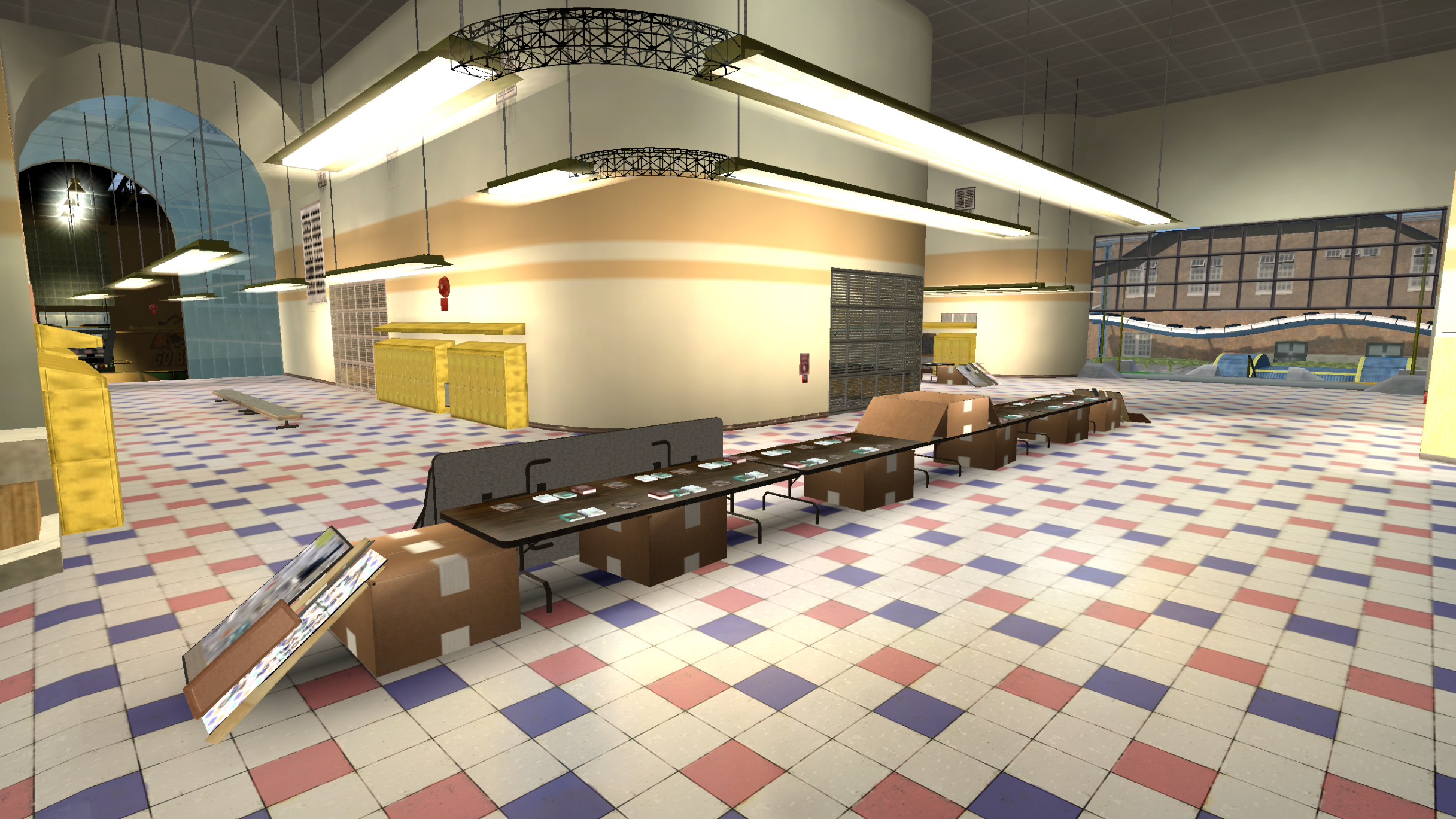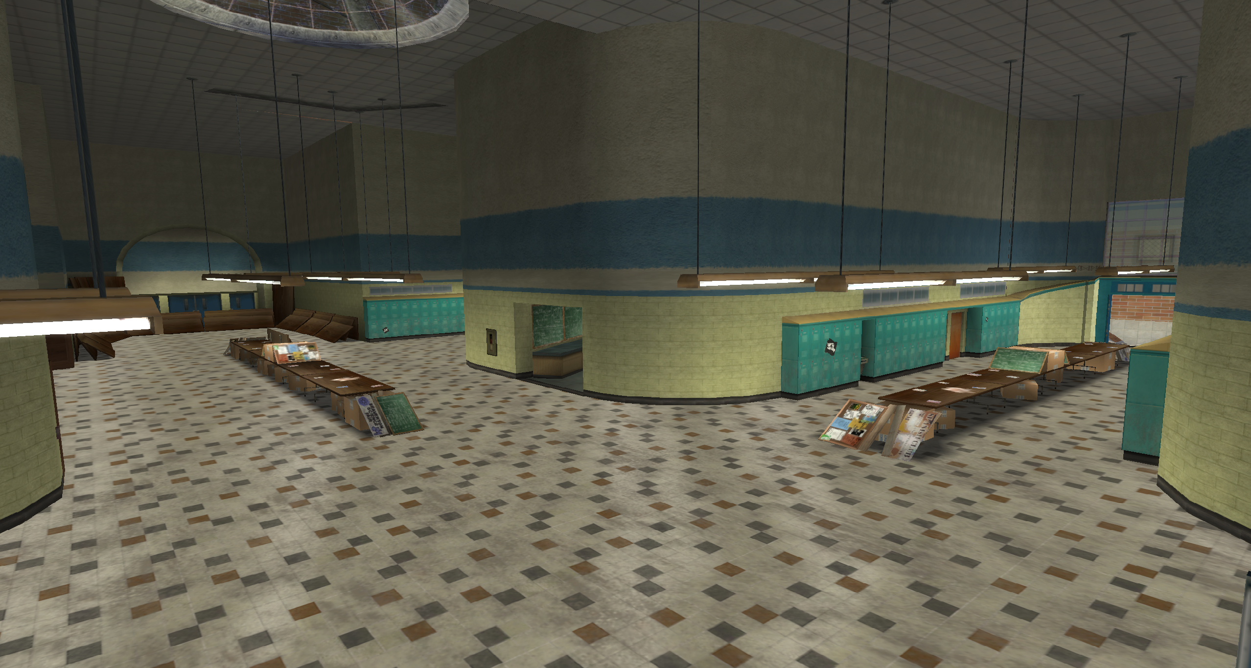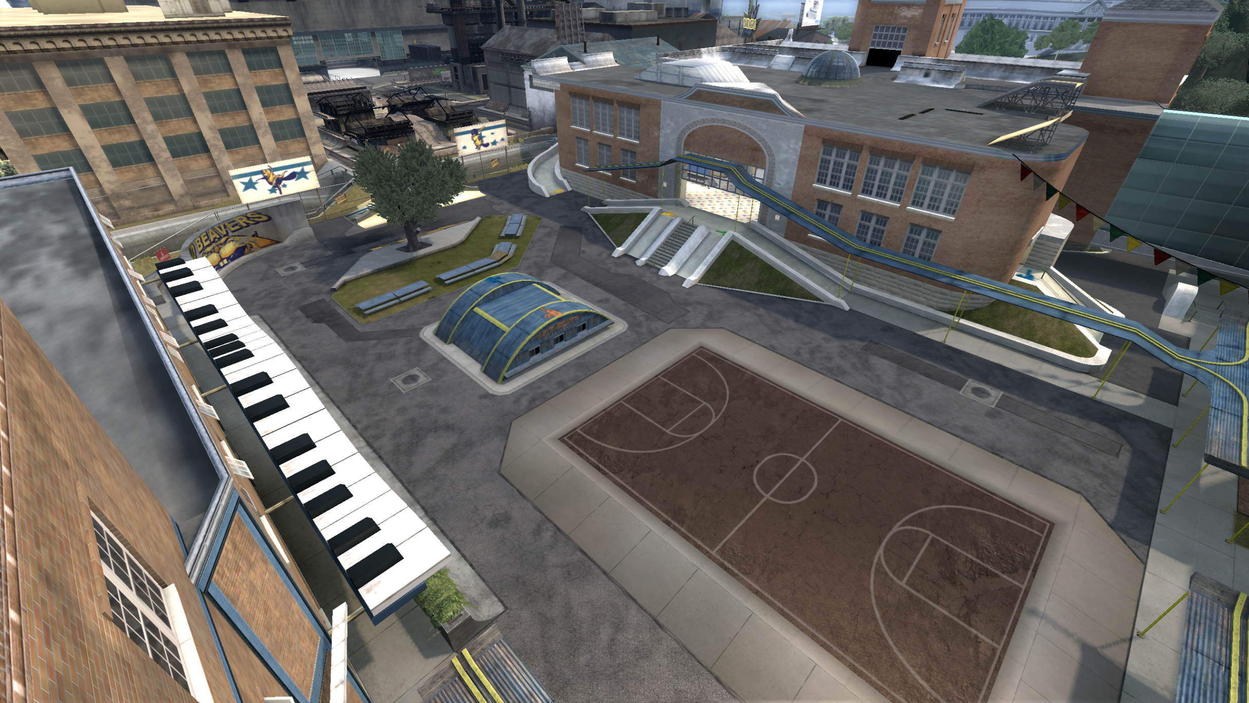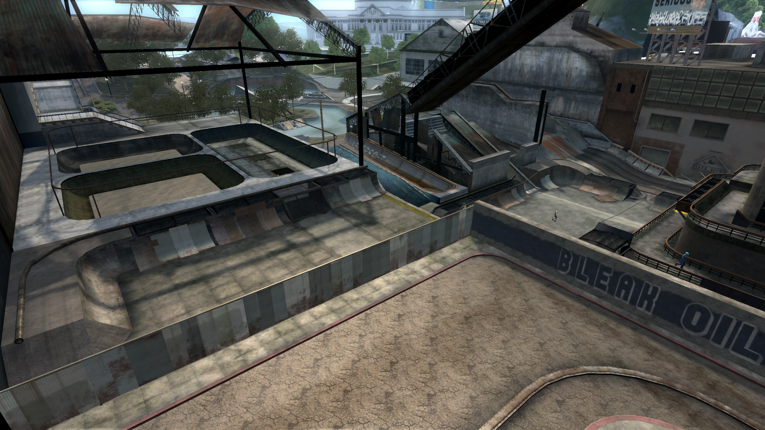 My main objective was to build a fun School level with a skateable exterior *and* interior. Up until this point, there have been at least 3 school levels in the series but none with skateable interior hallways.