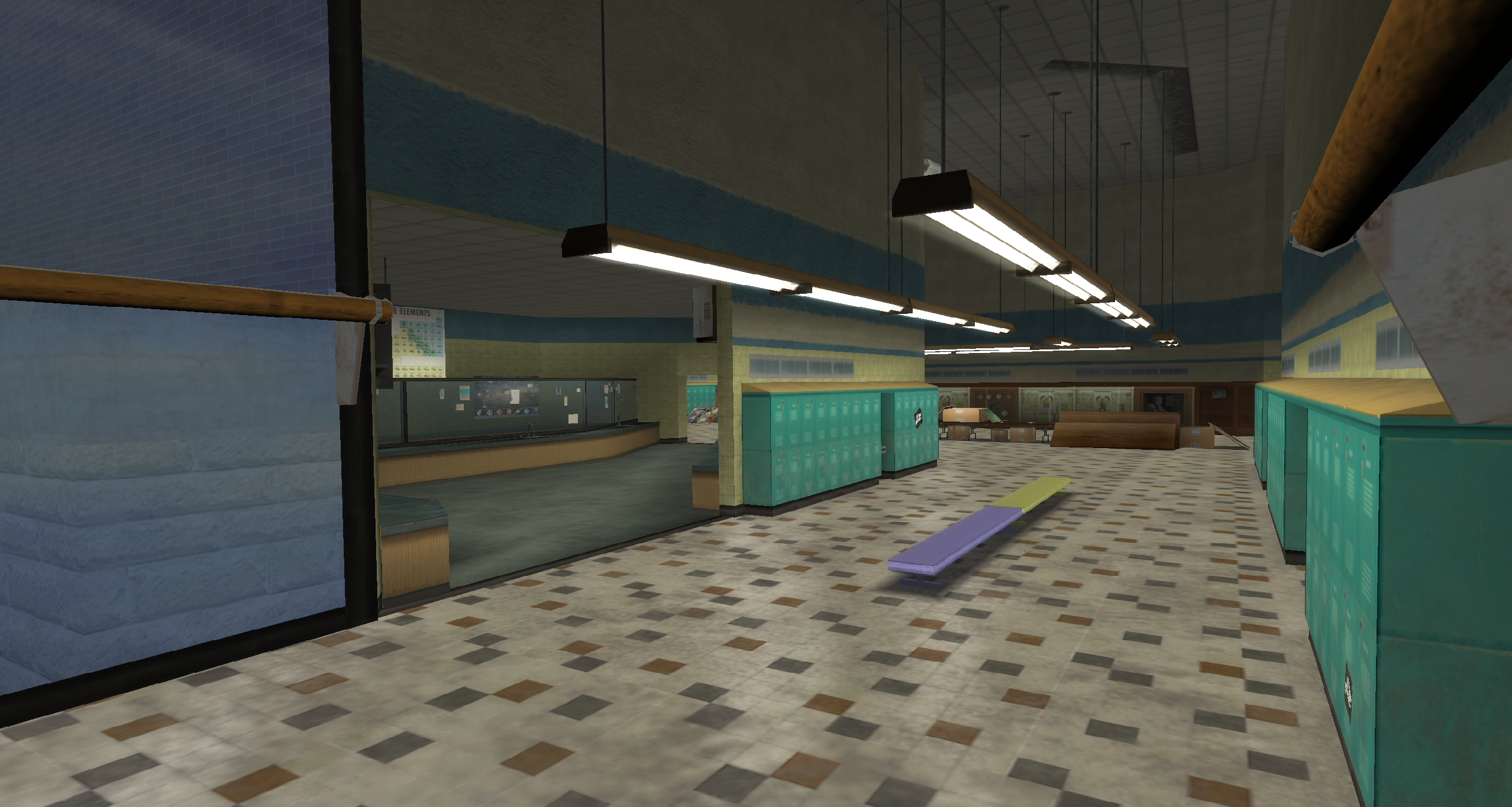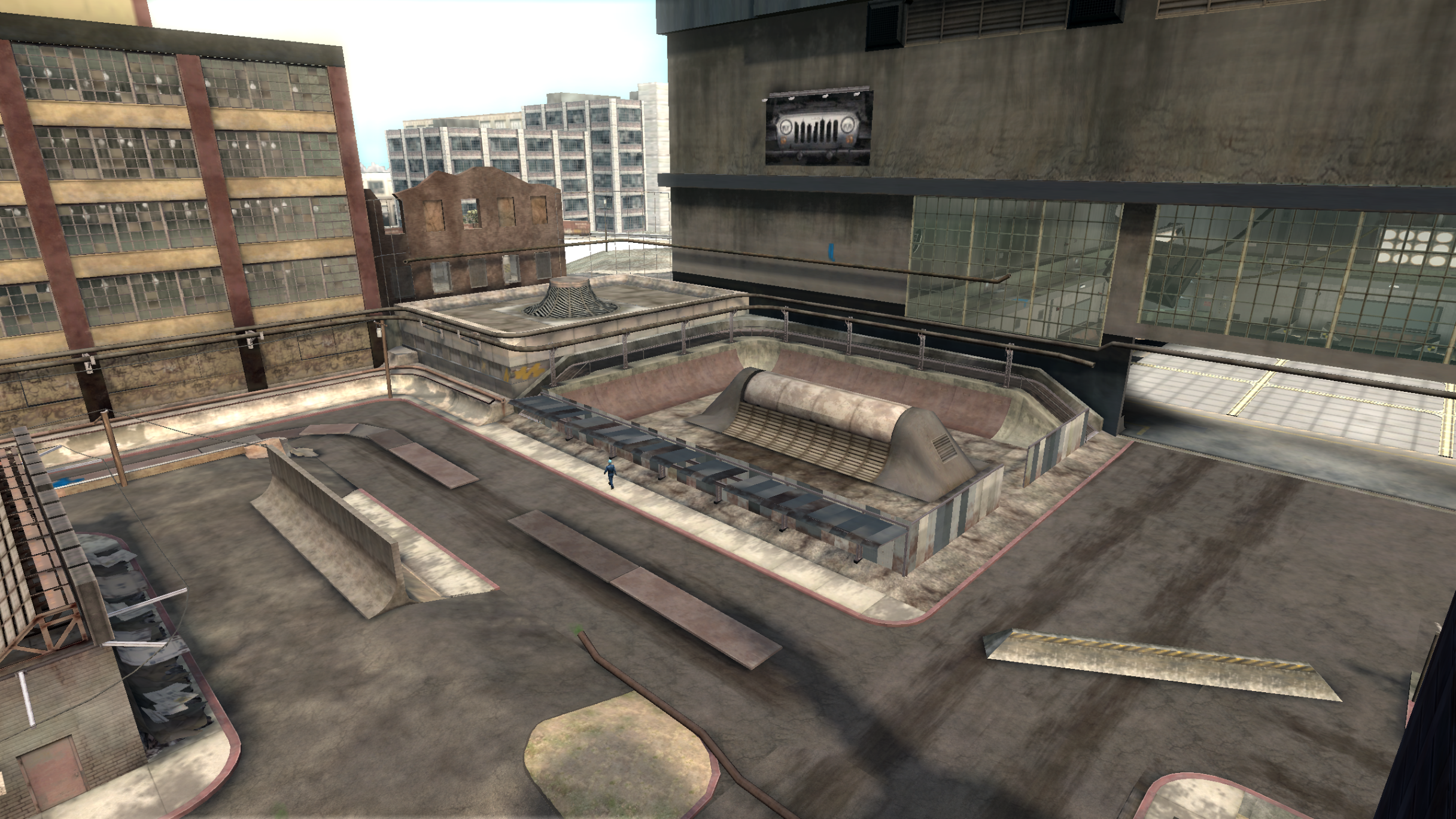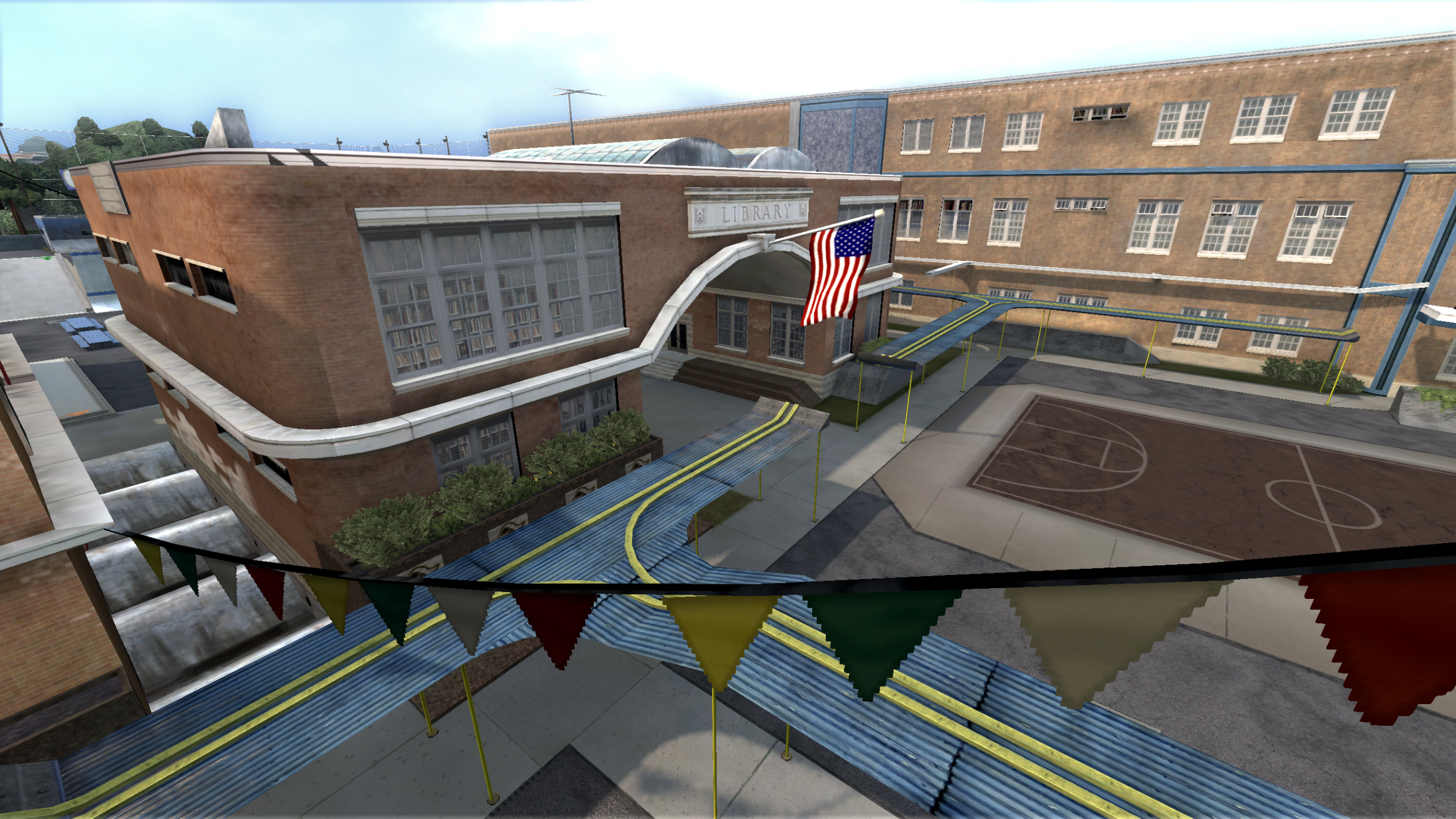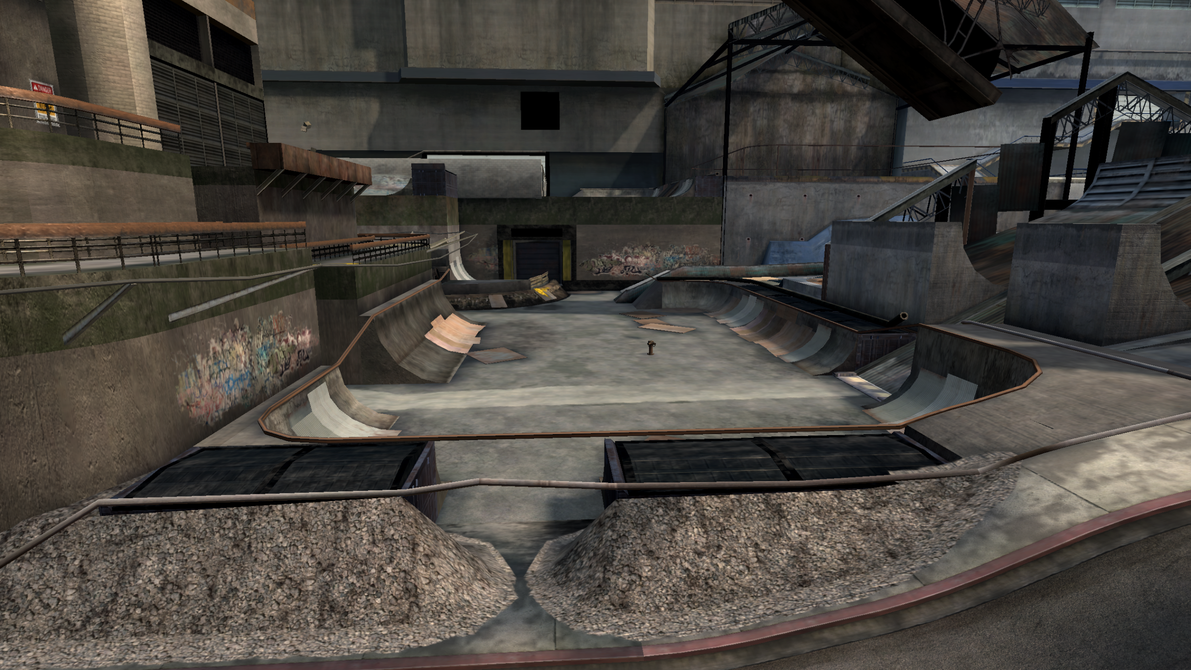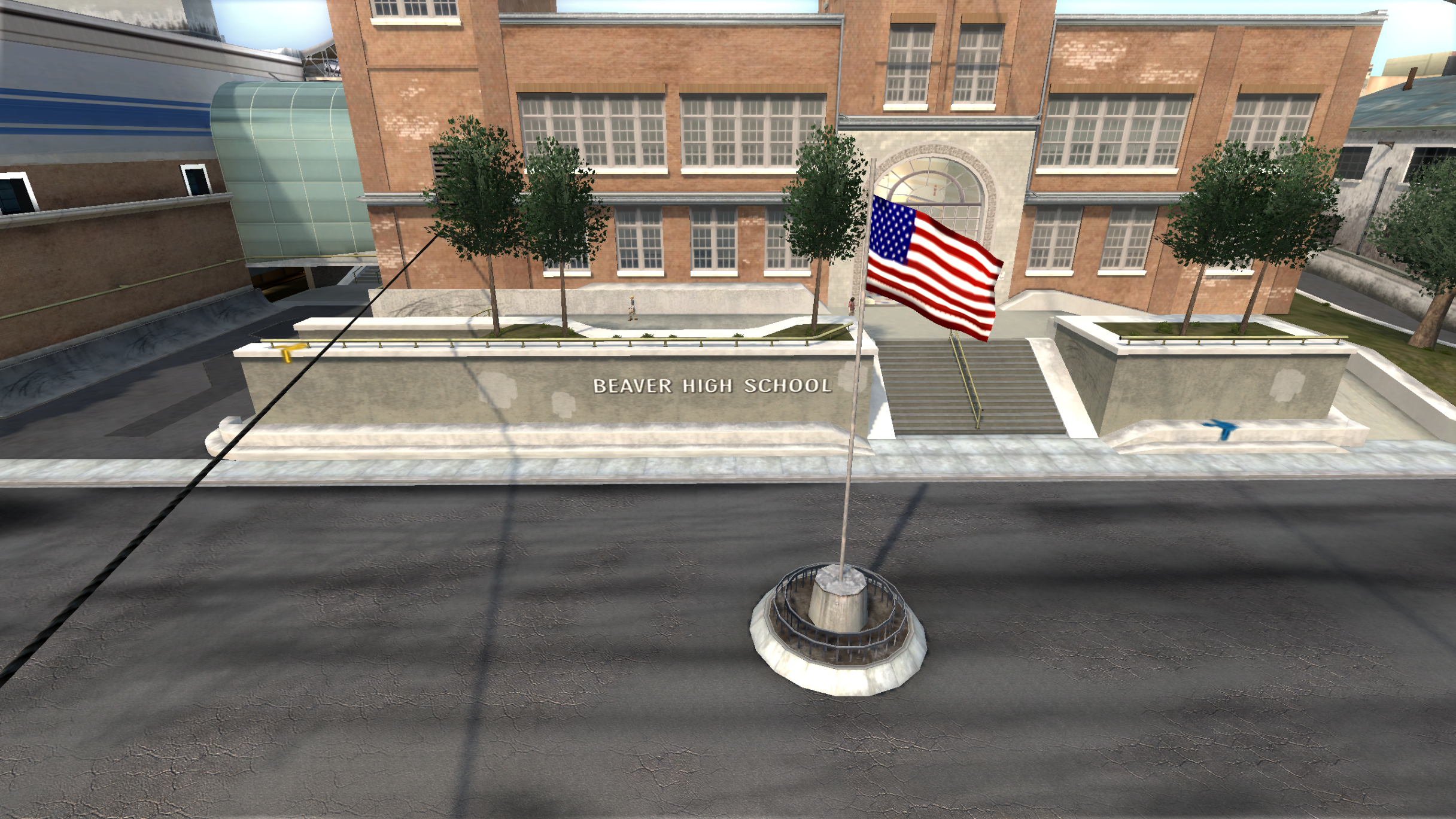 My main objective was to build a fun School level with a skateable exterior *and* interior. Up until this point, there have been at least 3 school levels in the series but none with skateable interior hallways.