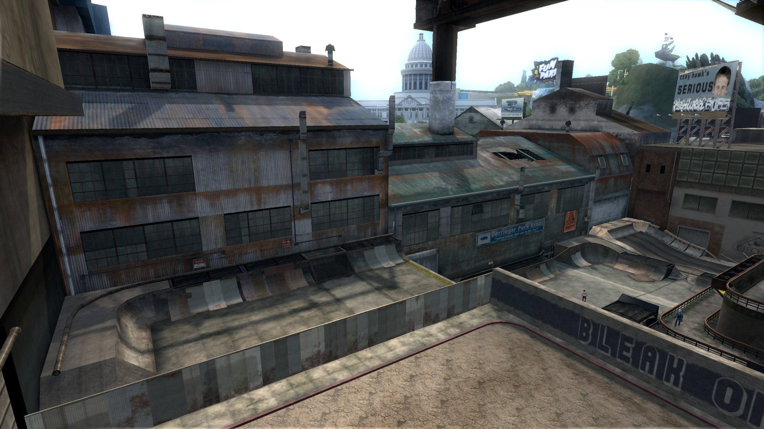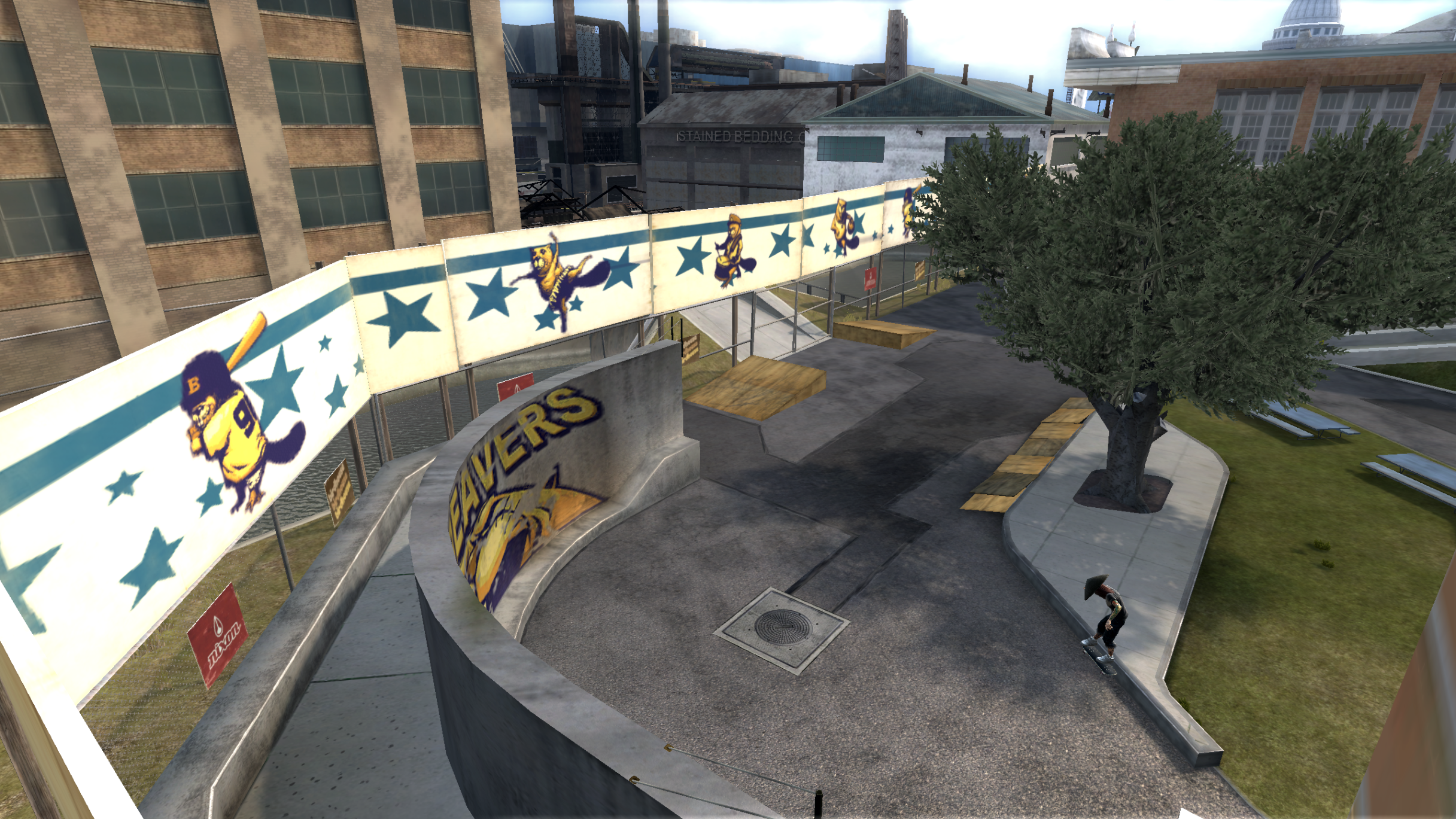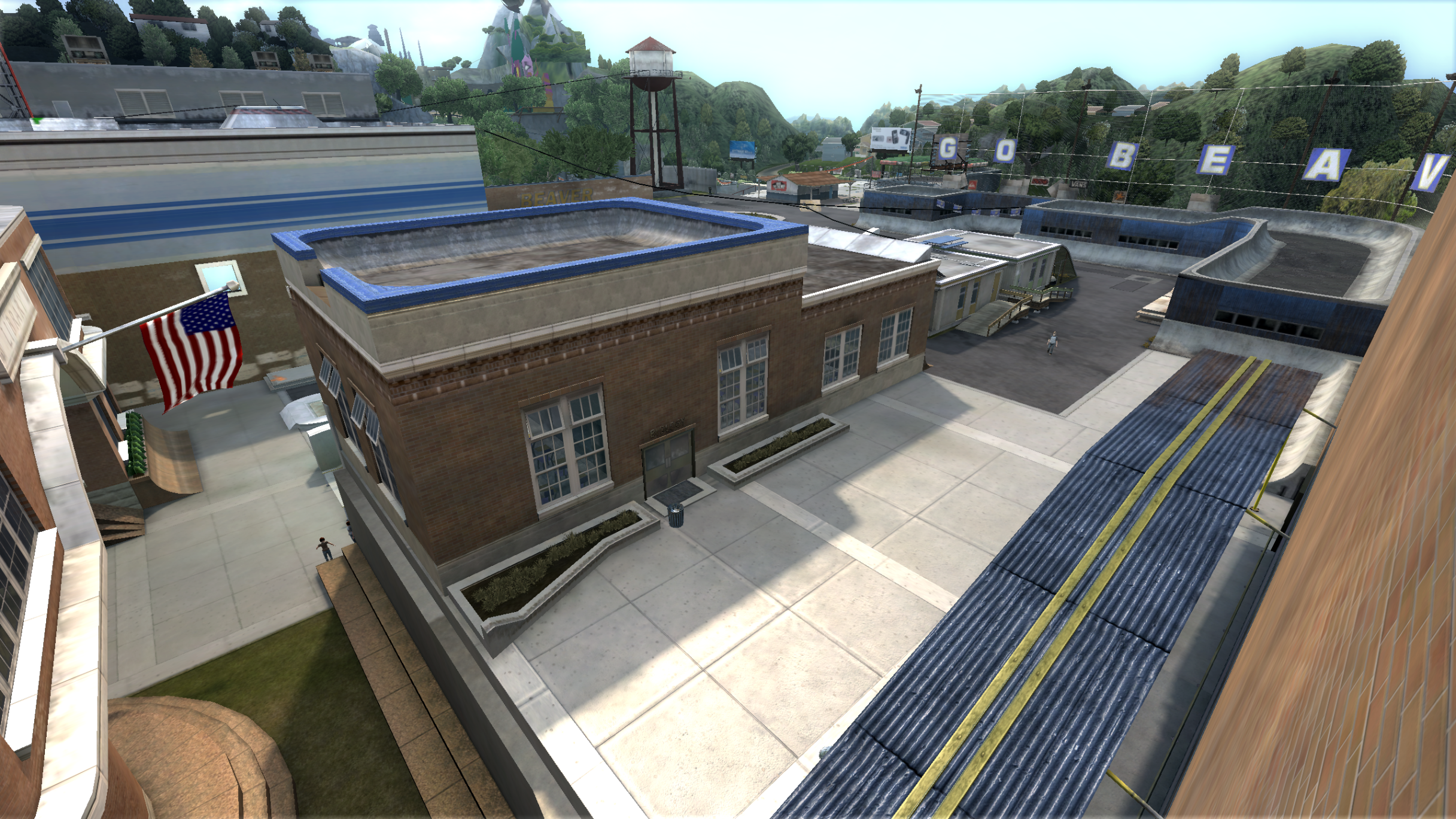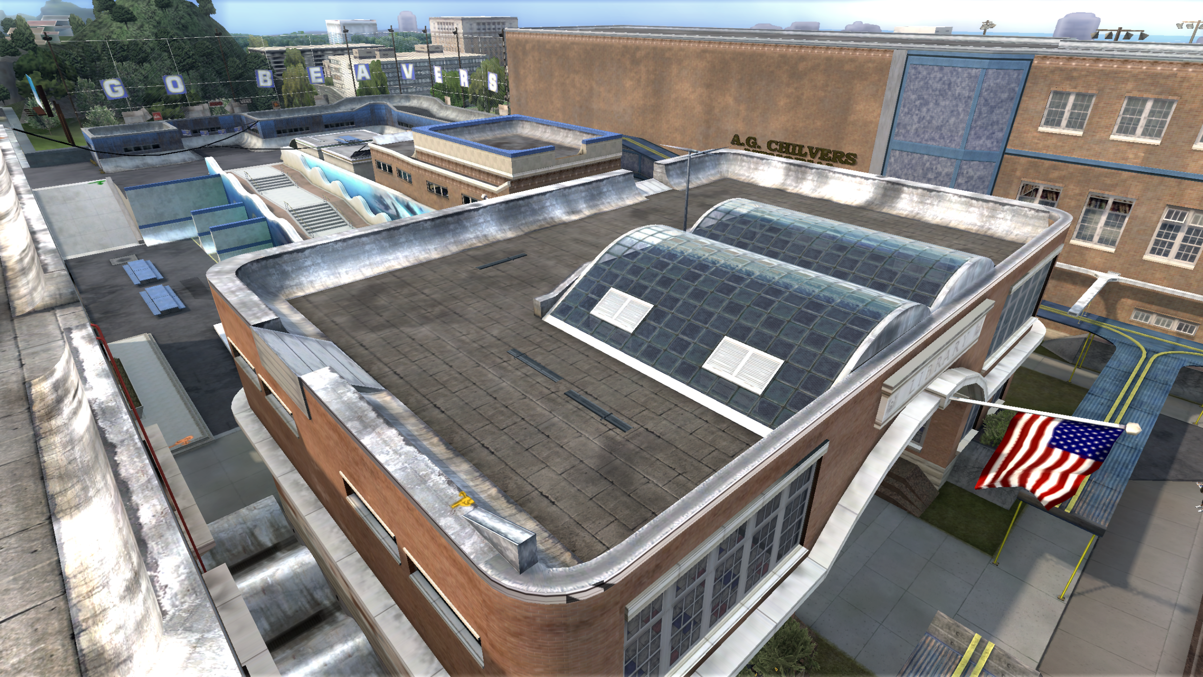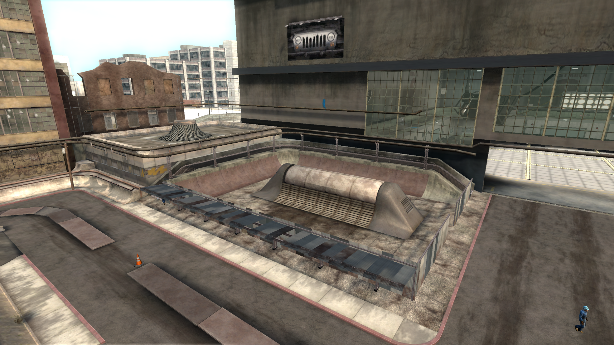 My main objective was to build a fun School level with a skateable exterior *and* interior. Up until this point, there have been at least 3 school levels in the series but none with skateable interior hallways.