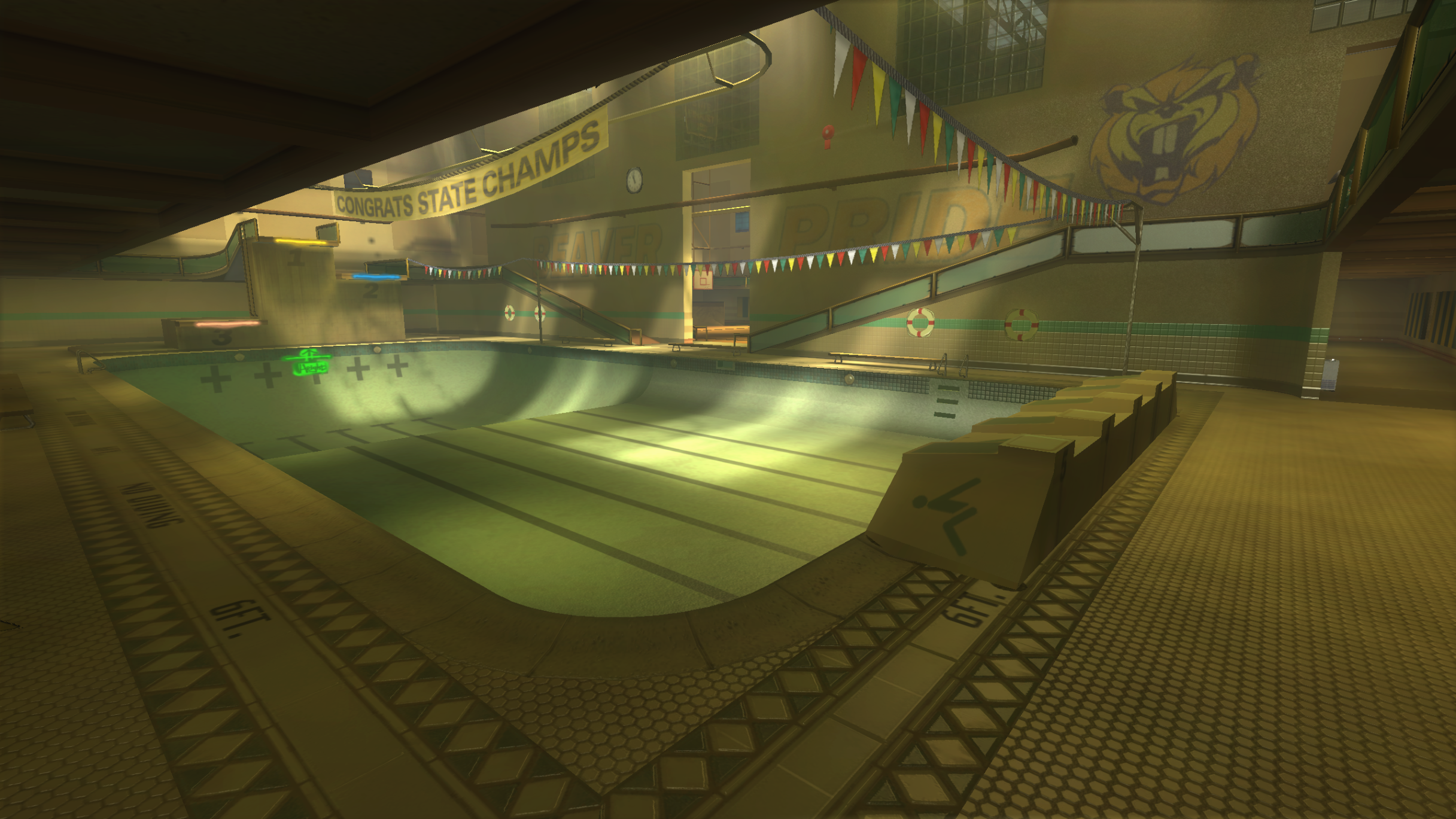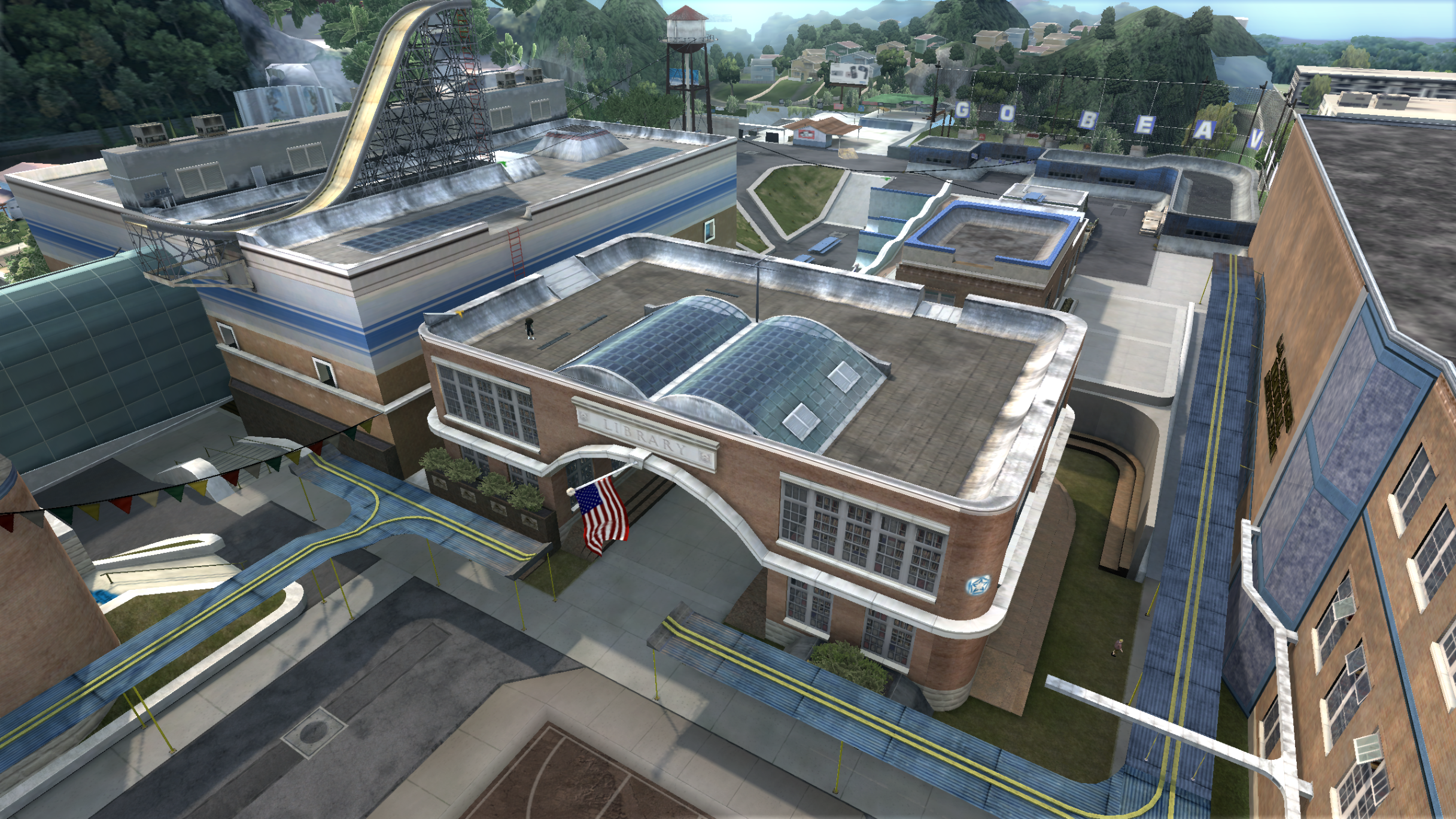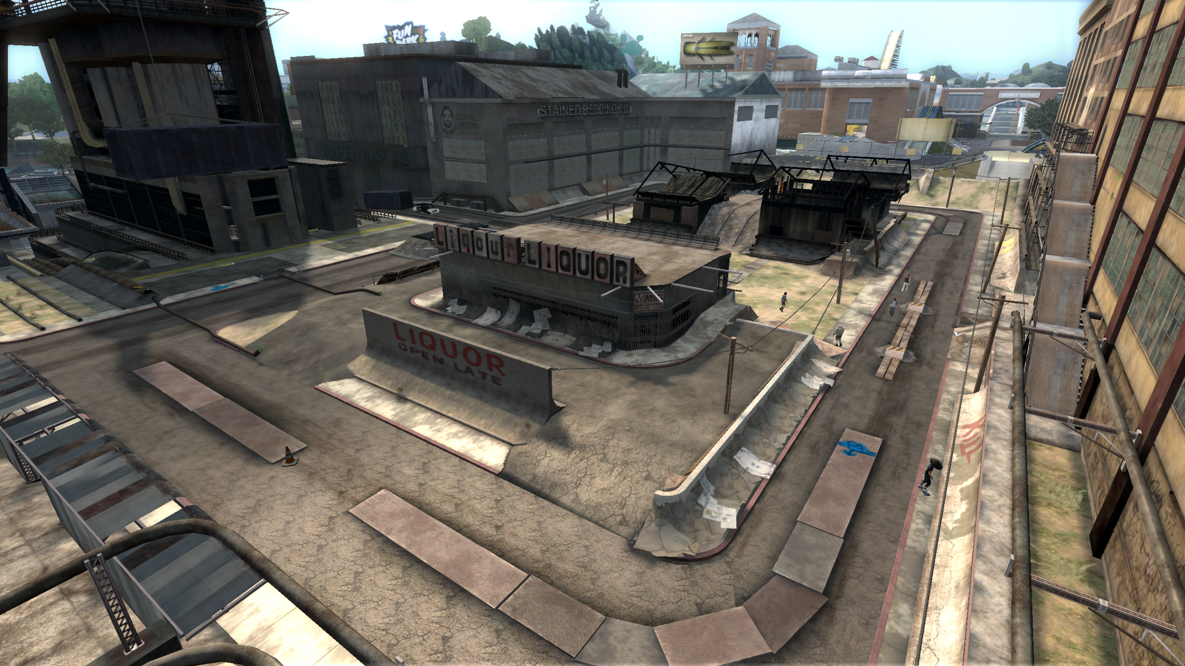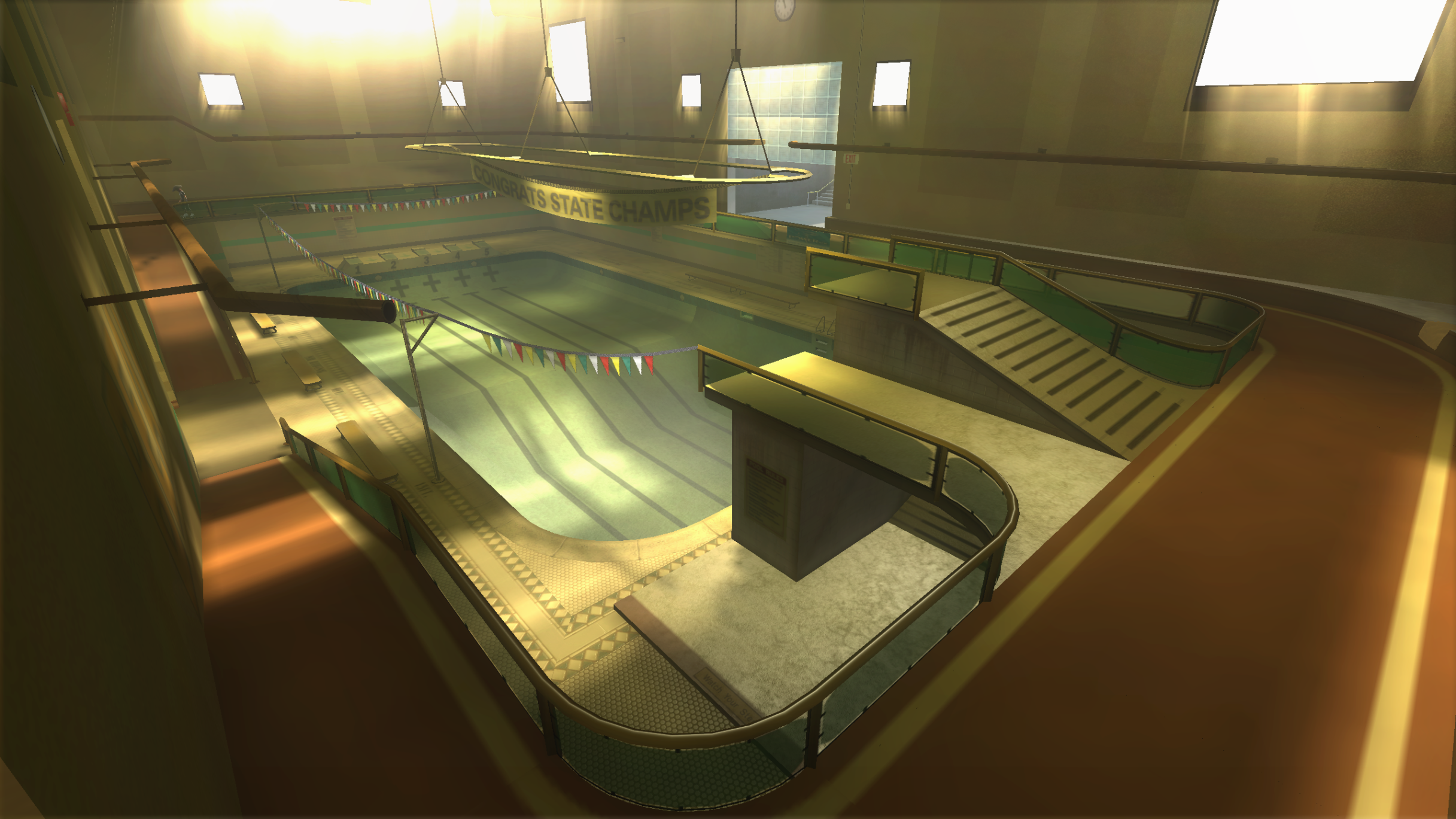 My main objective was to build a fun School level with a skateable exterior *and* interior. Up until this point, there have been at least 3 school levels in the series but none with skateable interior hallways.