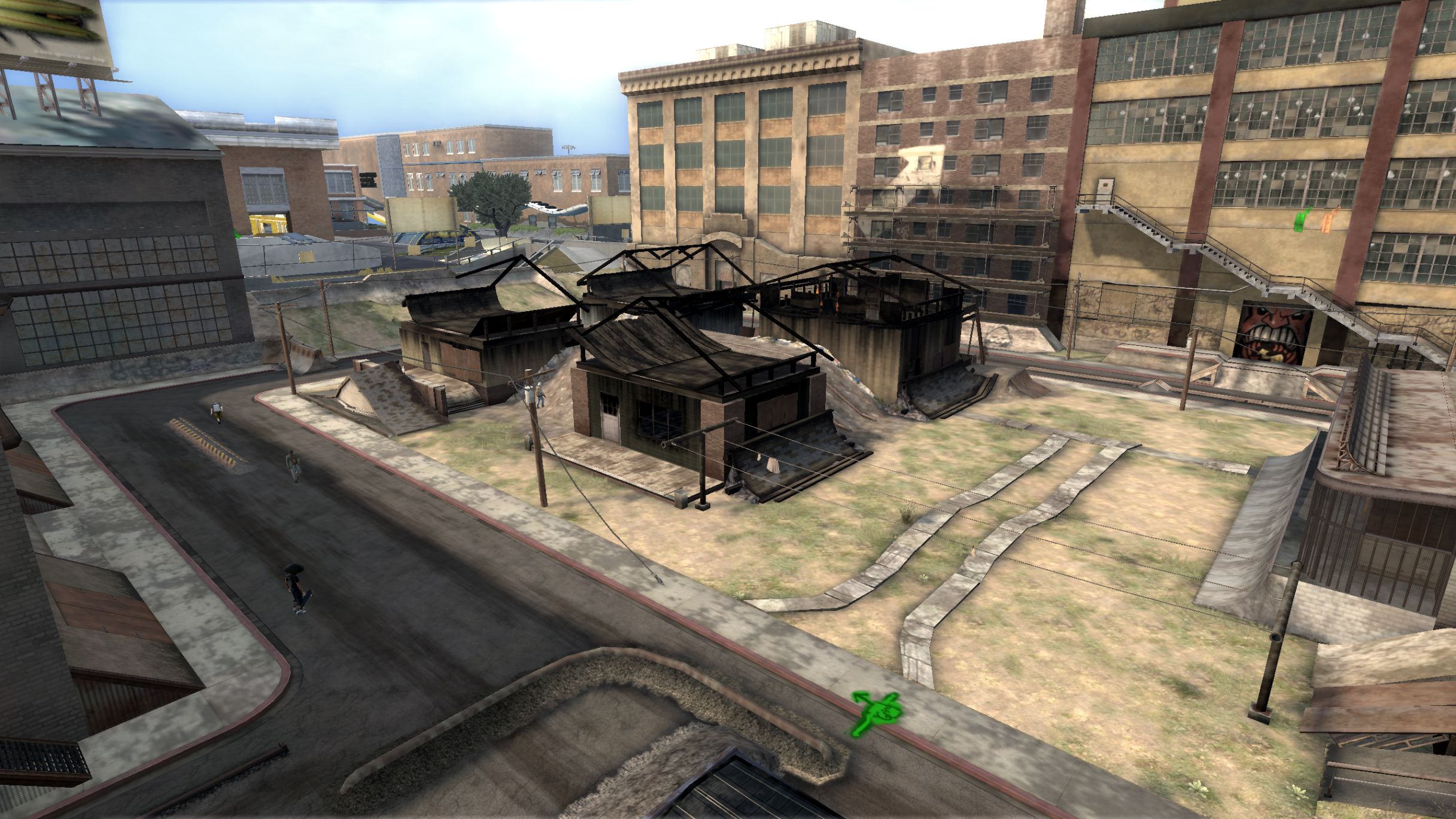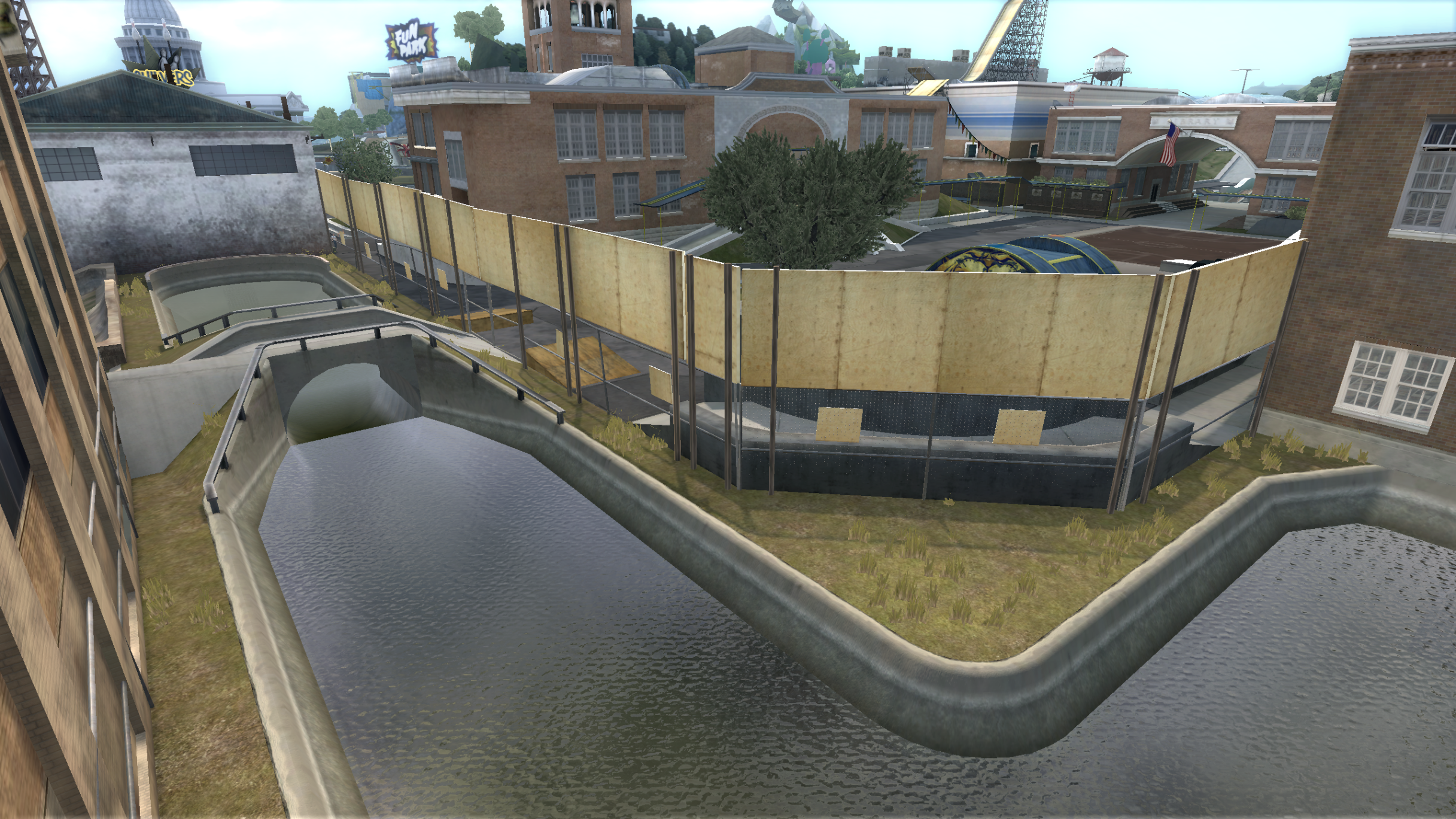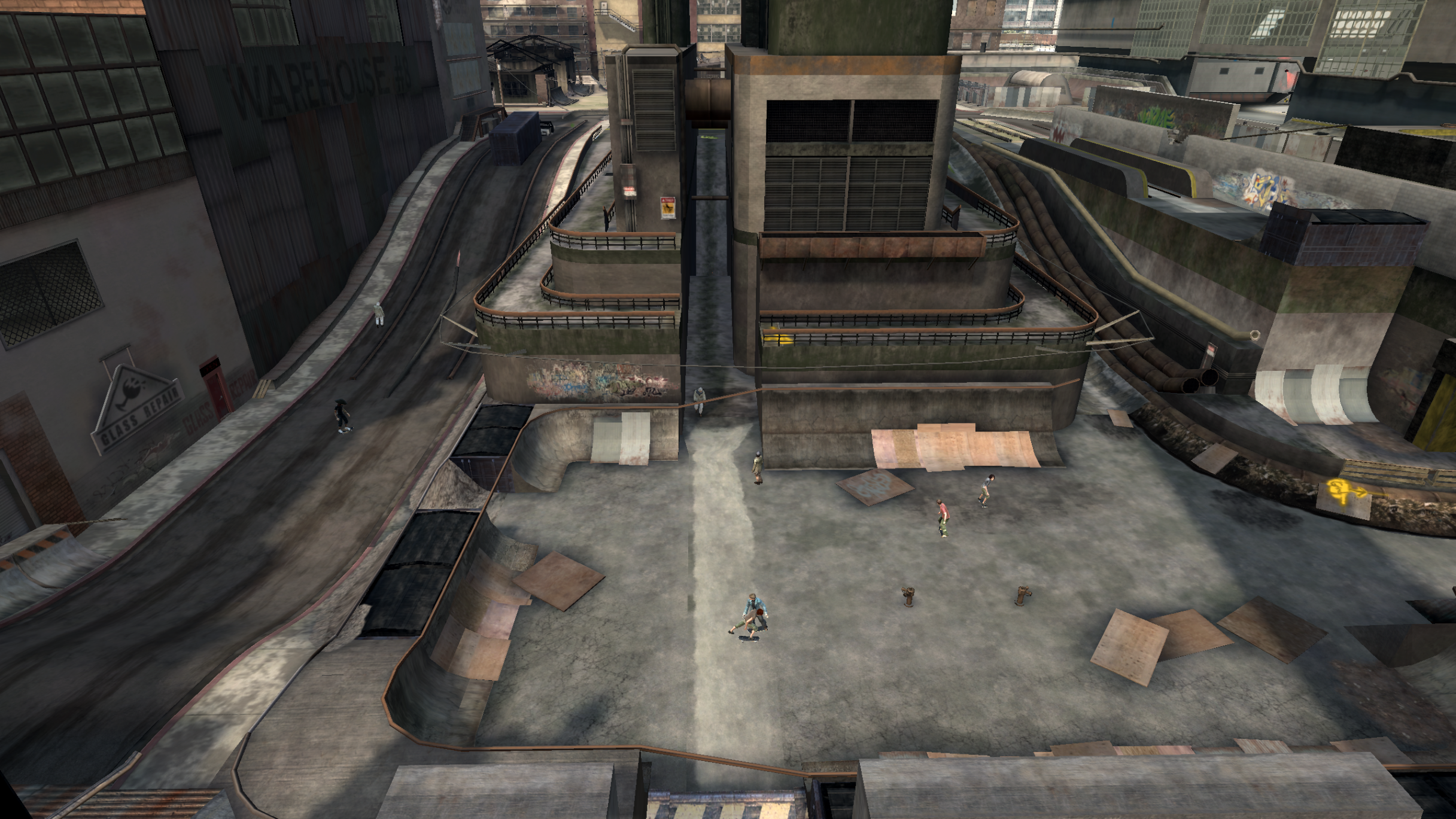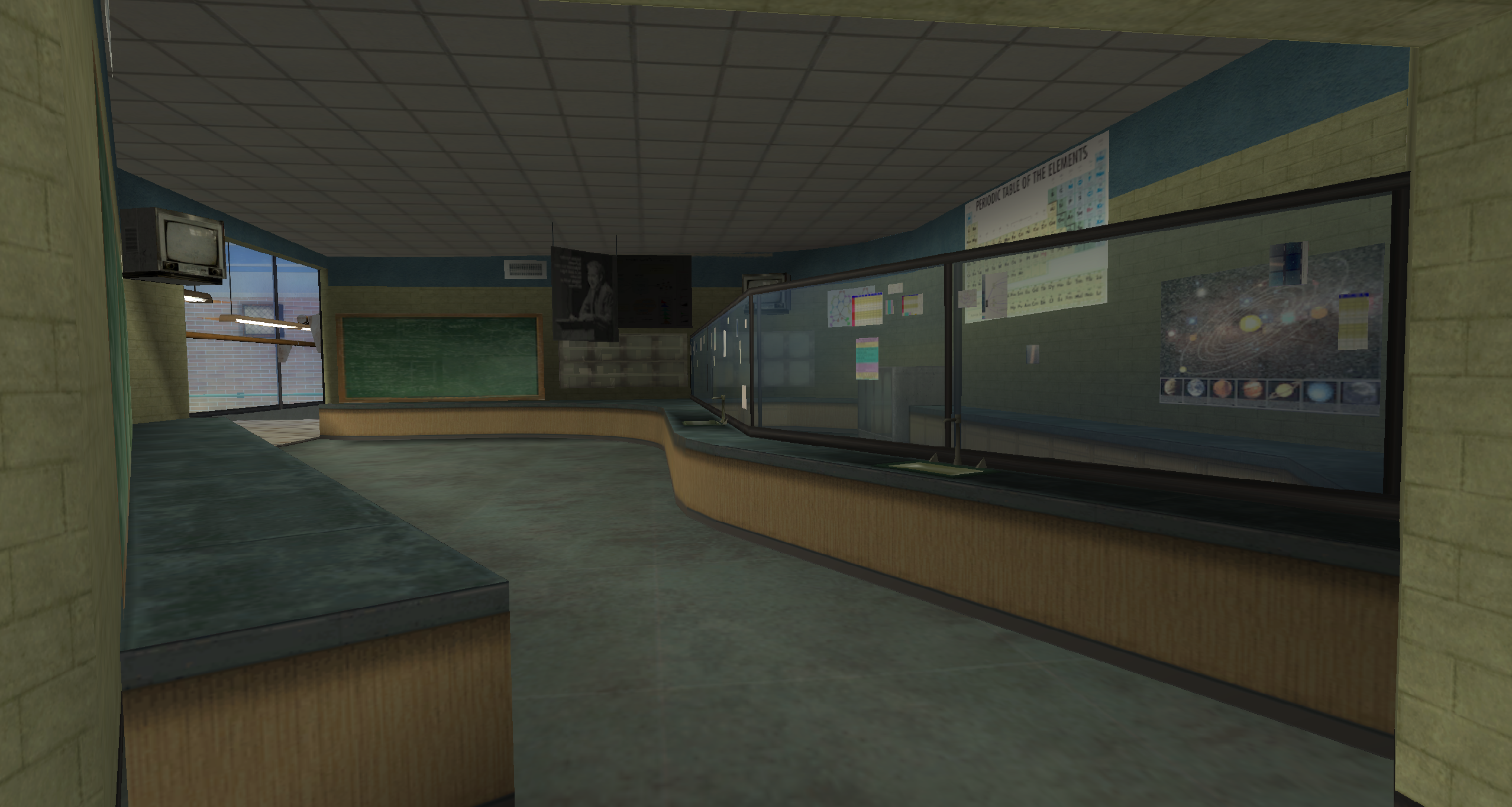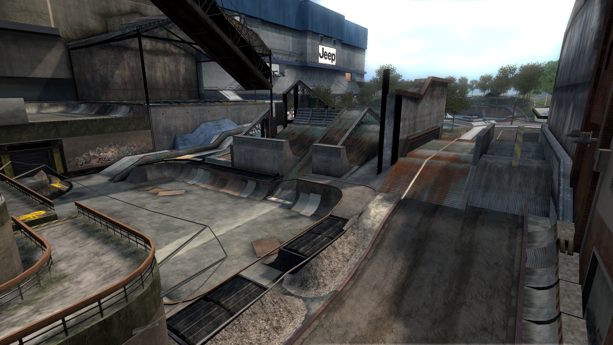 My main objective was to build a fun School level with a skateable exterior *and* interior. Up until this point, there have been at least 3 school levels in the series but none with skateable interior hallways.