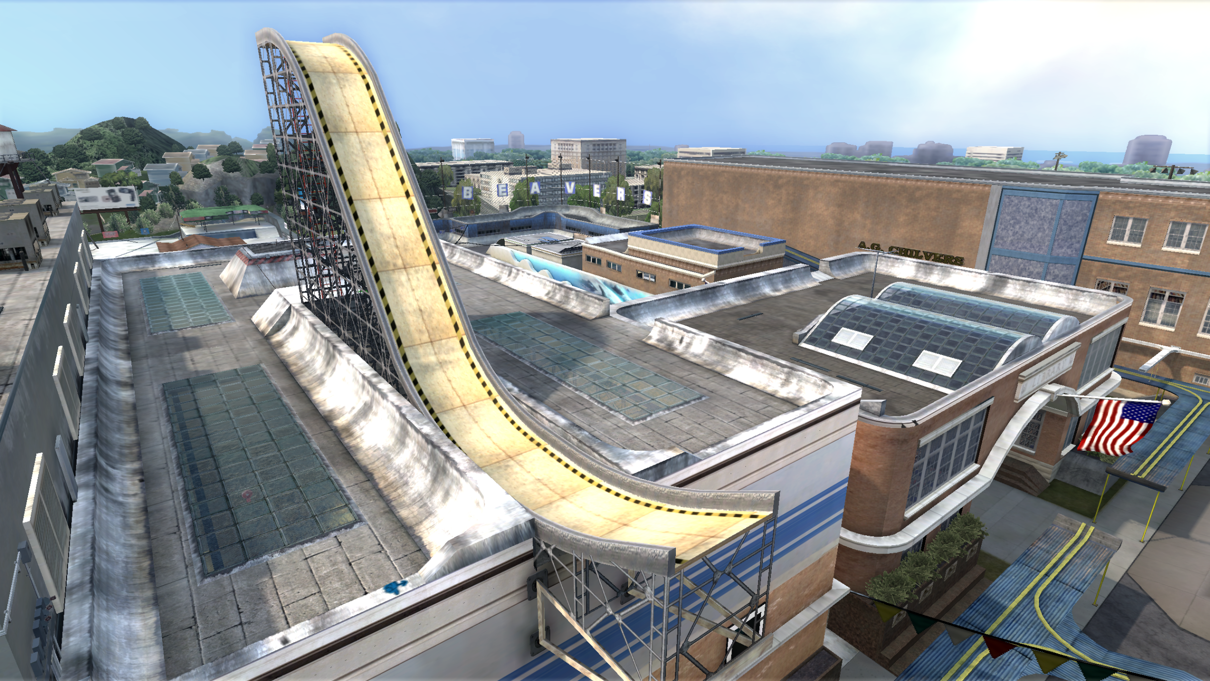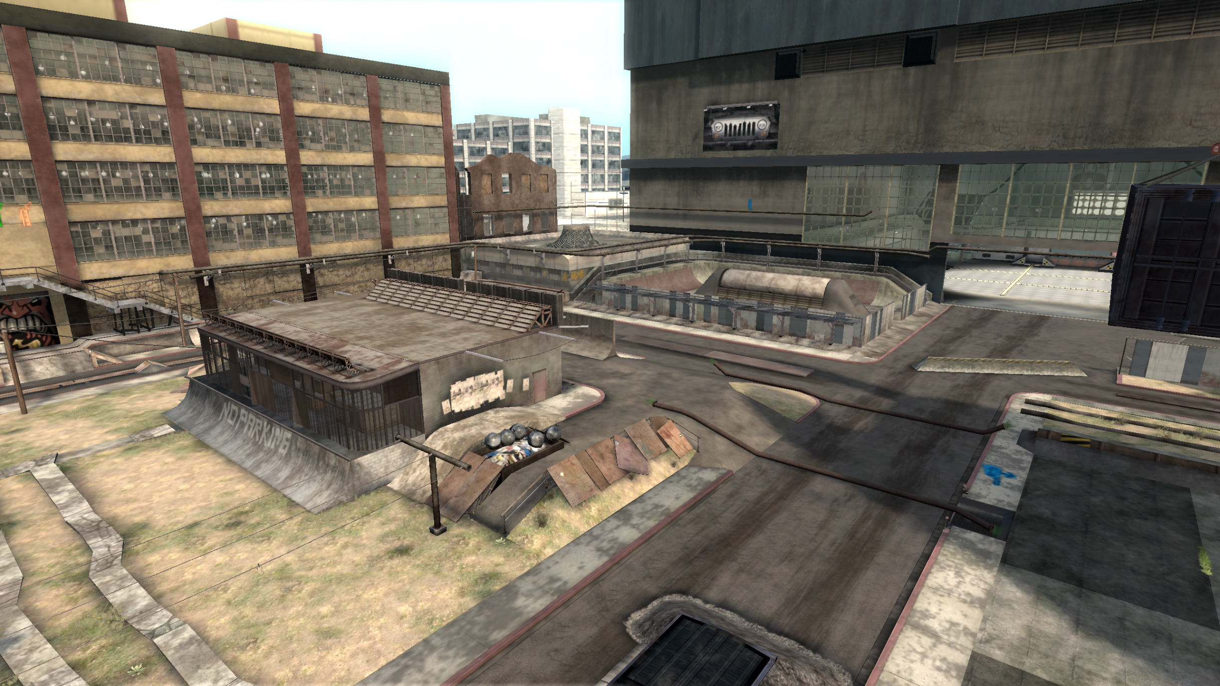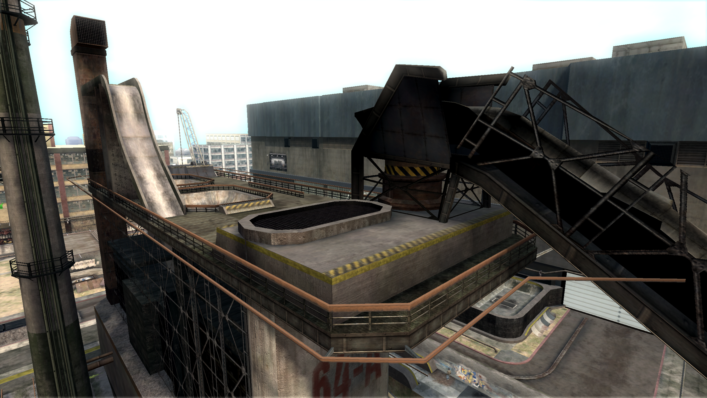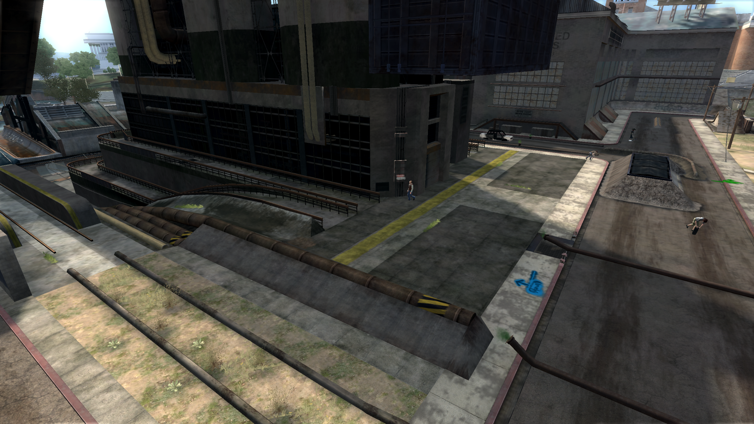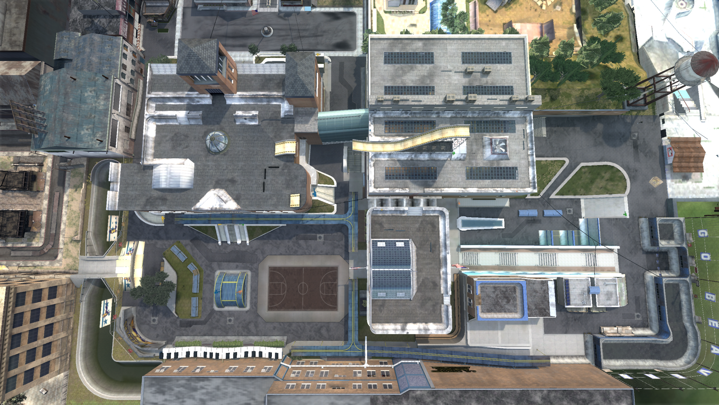 My main objective was to build a fun School level with a skateable exterior *and* interior. Up until this point, there have been at least 3 school levels in the series but none with skateable interior hallways.